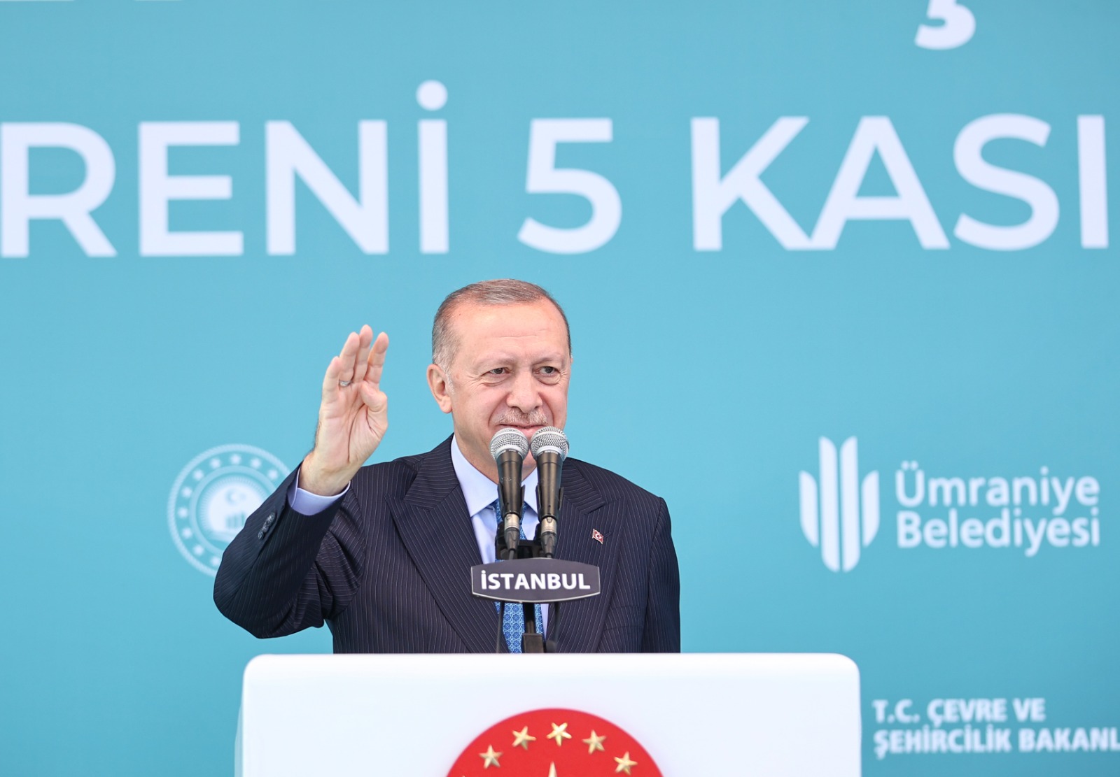 Cumhurbaşkanı Erdoğan, ilk olarak 1995'teki belediye başkanlığıyla çıktığı İstanbul'a hizmet yolculuğunu Başbakan ve Cumhurbaşkanı olarak da sürdürdüğünü belirterek, şöyle devam etti: "Ecdat yadigârı, medeniyetler beşiği, dünyanın gözdesi bu şehri, İstanbul'u hak ettiği yere getirmek için attığımız her adımın izlerini beraberce takip ediyoruz. Etrafı gecekondularla kuşatılmış, yolları çamur deryası, ulaşımı felç, suyu akmayan, kokudan Haliç'in yanına yaklaşılmayan, görüntüsü sefil, insanı mutsuz İstanbul'u hamdolsun küresel bir merkez hâline getirmeyi başardık. Şimdi de 2053 vizyonumuzun ilk hedefi olarak ilan ettiğimiz Yeşil Kalkınma Devrimi doğrultusunda İstanbul'u içinde yaşayanların hayat kalitesini yükseltecek hizmetlerle tanıştırmak için kolları sıvadık. Ülkemizin dört bir yanında inşa etmeyi planladığımız millet bahçeleri projelerimizin önemli bir kısmını İstanbul'da hayata geçiriyoruz. Bugüne kadar 81 ilimizde 66 milyon metrekare alana sahip 404 millet bahçesini projelendirdik. Bunlardan 111'ini tamamlayarak hizmete sunduk. Hedefimiz 2023 yılında 404 millet bahçesinin tamamını bitirmektir."