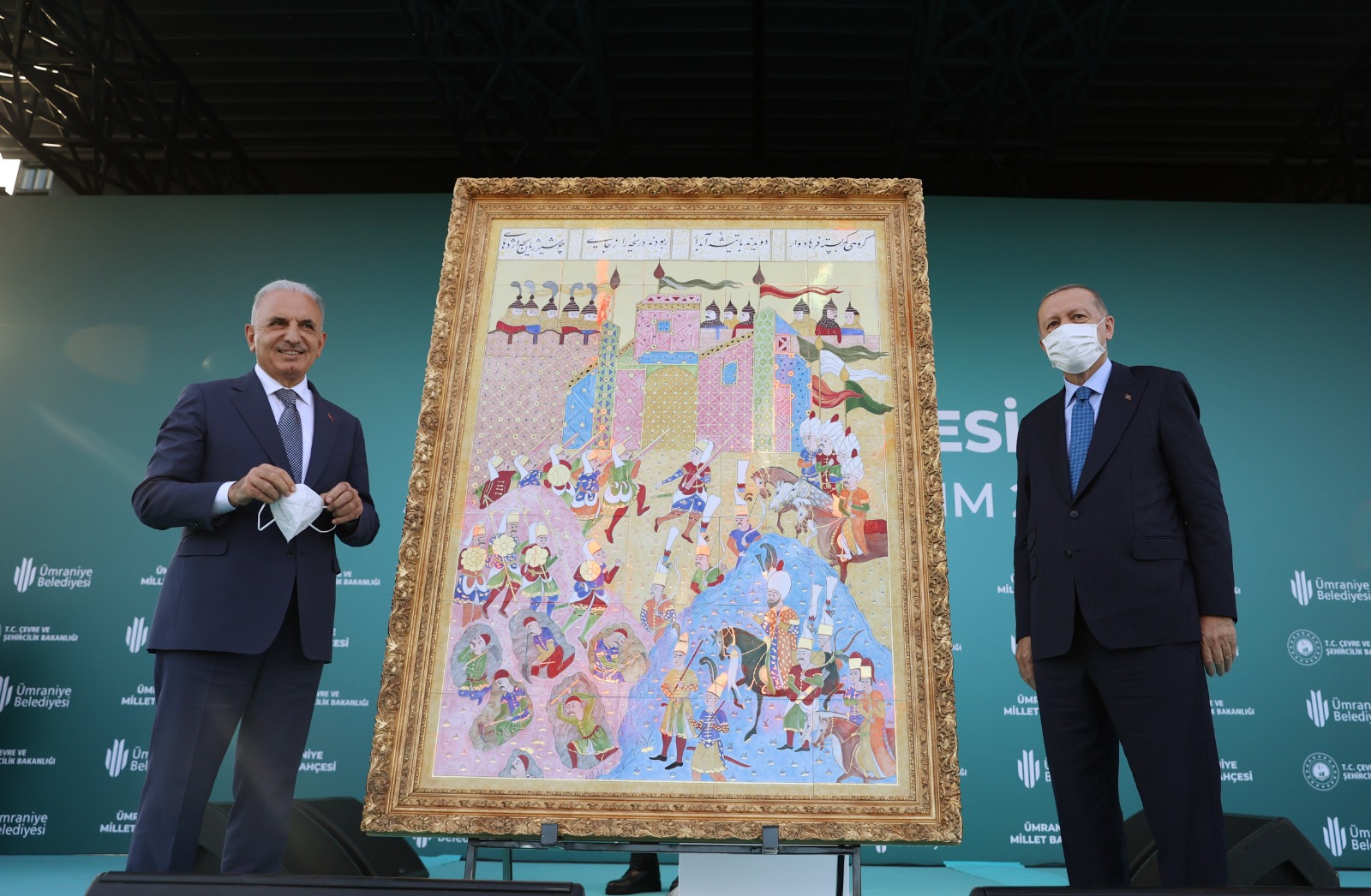 Törende, Ümraniye Belediye Başkanı İsmet Yıldırım, Cumhurbaşkanı Erdoğan'a Rodos kuşatmasını anlatan, belediye bünyesindeki sanatçılarca 1 yılda hazırlanan tablo hediye etti.