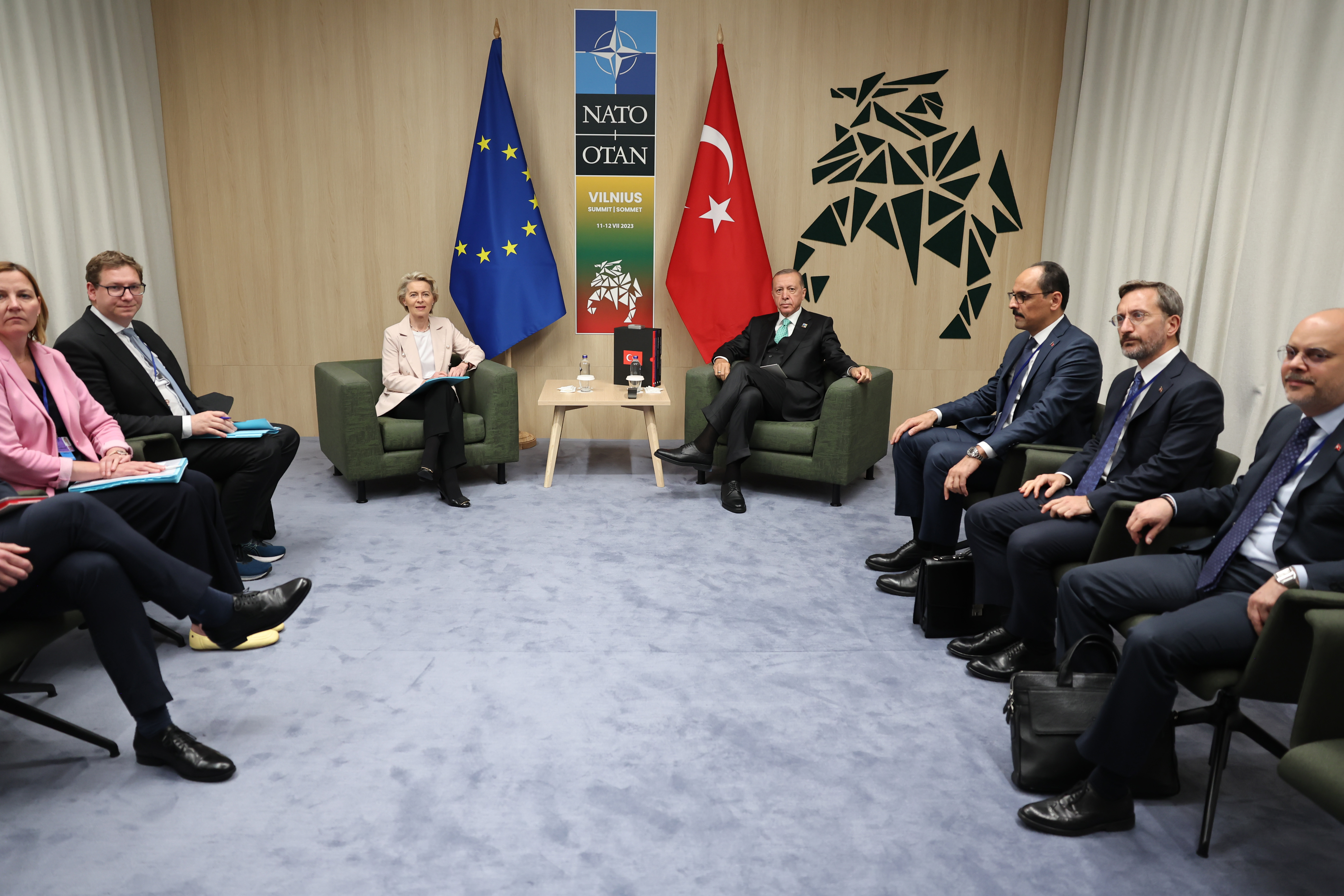 LITEXPO Sergi ve Fuar Merkezi'nde heyetlerin de katıldığı görüşmede, Cumhurbaşkanı Erdoğan'a, MİT Başkanı İbrahim Kalın, Cumhurbaşkanlığı İletişim Başkanı Fahrettin Altun ile Cumhurbaşkanlığı Başdanışmanı Büyükelçi Akif Çağatay Kılıç eşlik etti.