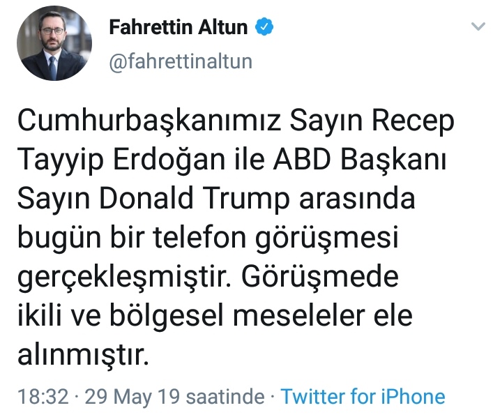Erdoğan ve Trump'ın bugün telefon görüşmesi gerçekleştirdiği belirtilen paylaşımda, şunlar kaydedildi: