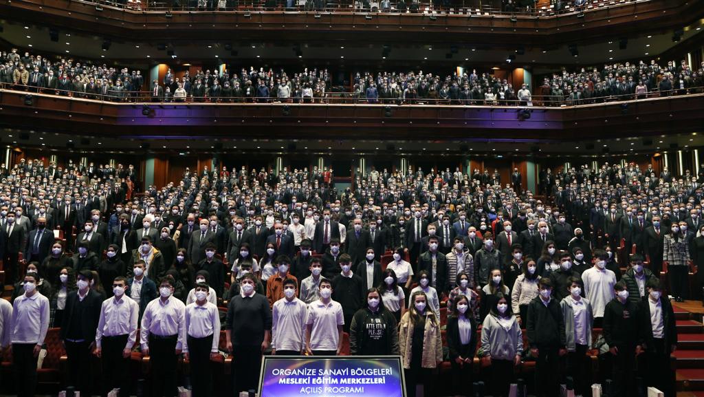 Kanun değişikliği öncesinde 159 bin olan mesleki eğitim merkezlerindeki öğrenci sayısının 250 bine ulaştığını dile getiren Cumhurbaşkanı Erdoğan, "Yılsonuna kadar 1 milyon gencimizi mesleki eğitim merkezlerimize dâhil ederek, istihdamlarını sağlamayı hedefliyoruz." ifadesini kullandı.