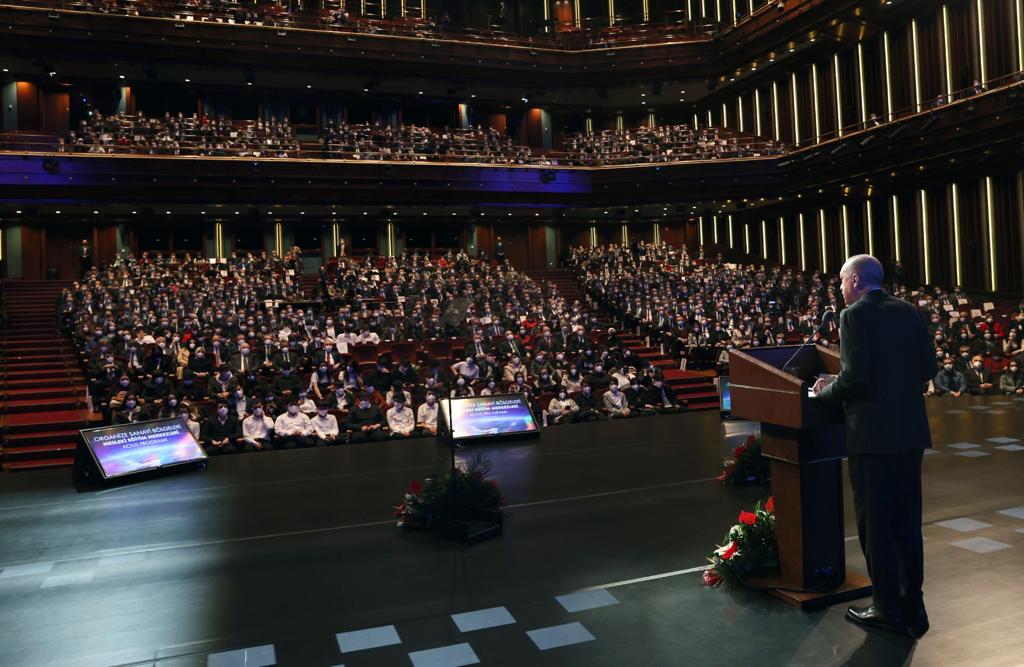 Cumhurbaşkanı Erdoğan, göreve geldiklerinde her alanda olduğu gibi eğitimde de sorunlarla boğuşan bir Türkiye manzarasıyla karşılaştıklarını belirtti.