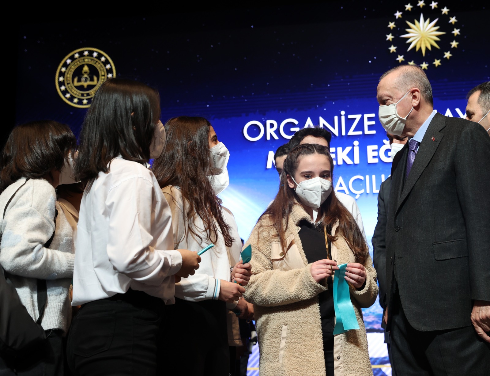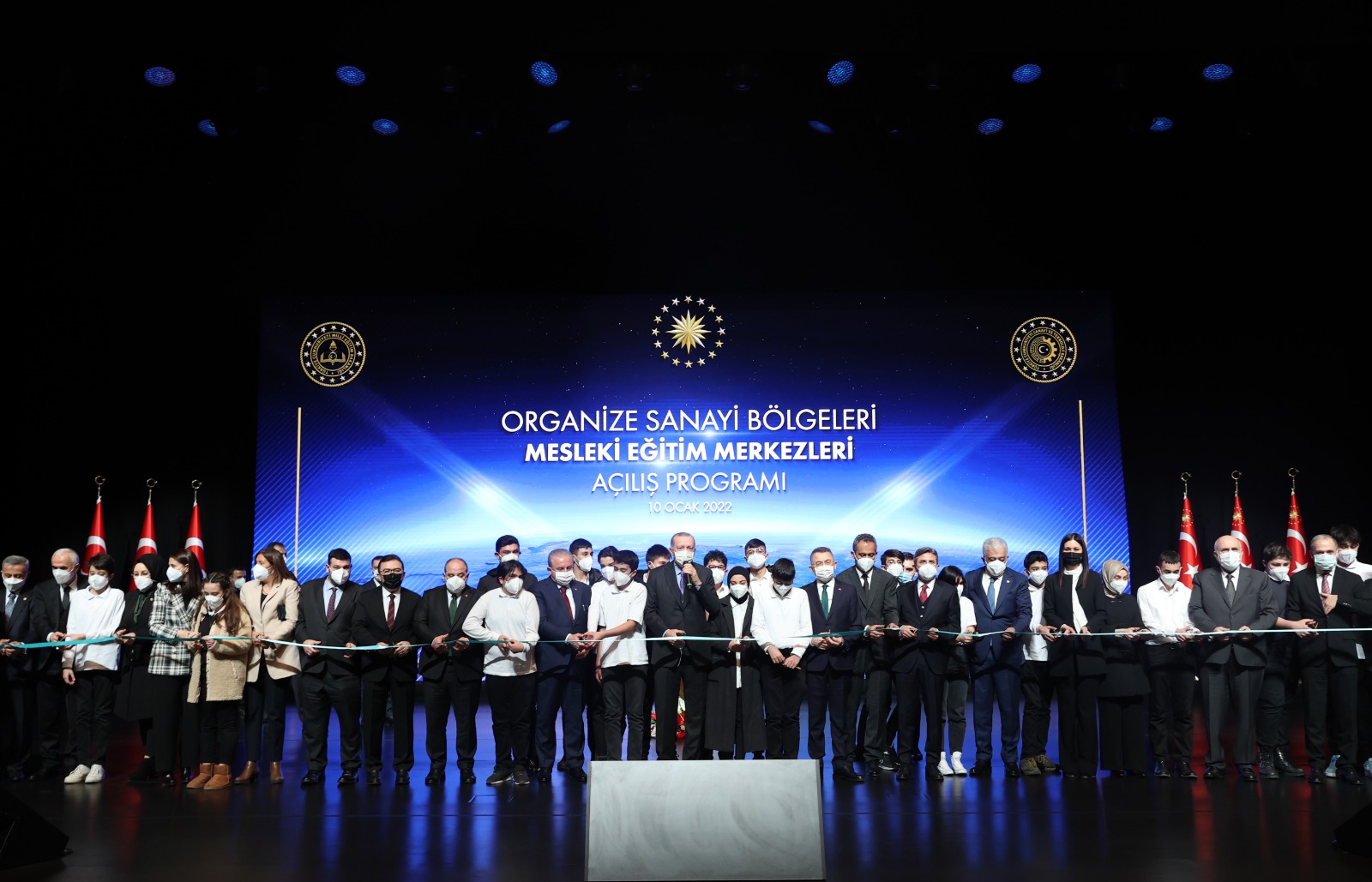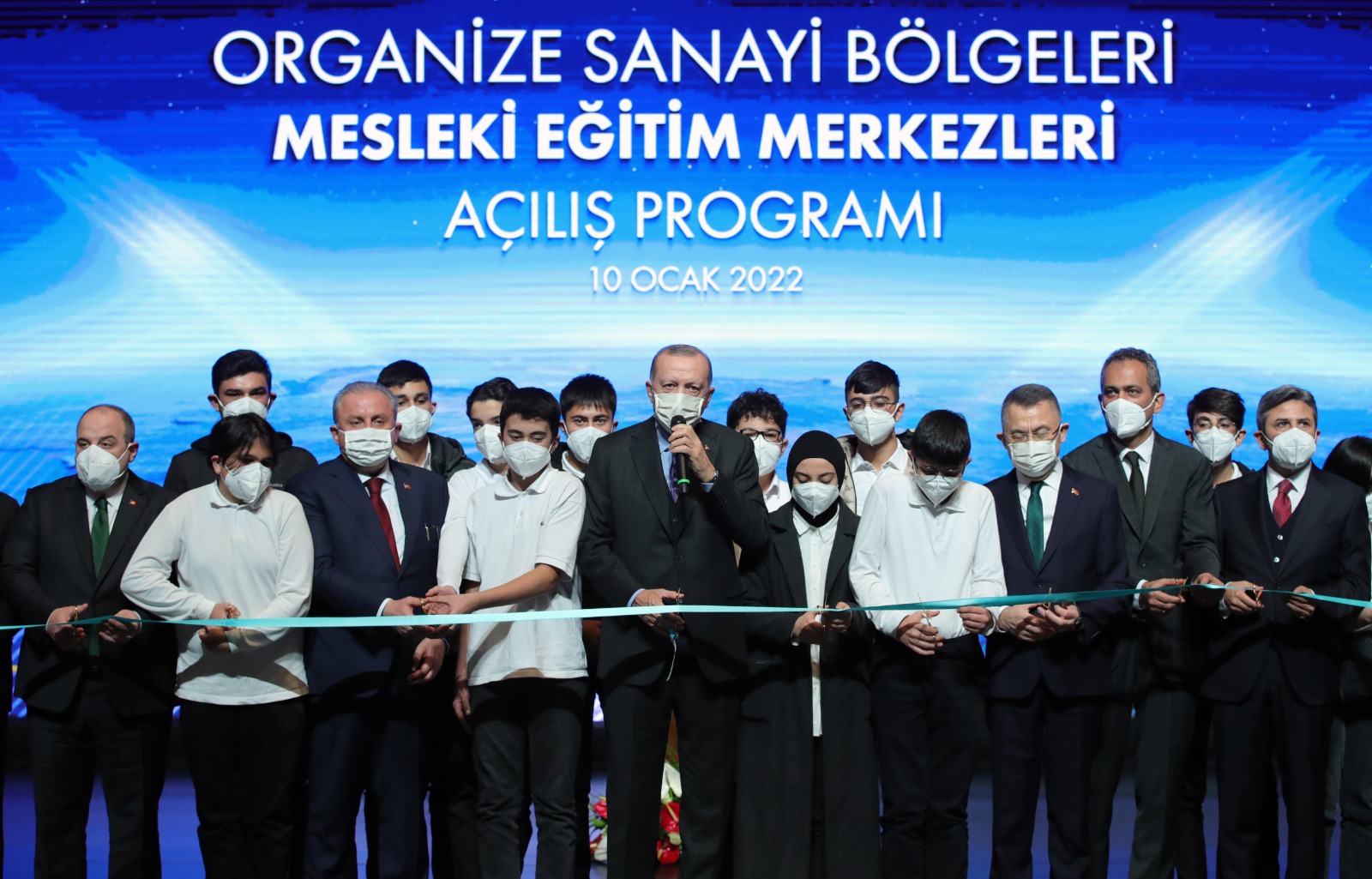 Millî Eğitim Bakanlığı ile Sanayi ve Teknoloji Bakanlığının iş birliğinde gerçekleştirilen Organize Sanayi Bölgeleri Mesleki Eğitim Merkezleri Projesi'nin, ülkenin temel ihtiyaçlarından birini daha giderdiğini ifade eden Cumhurbaşkanı Erdoğan, ülkede üretim ve istihdamın lokomotifi hâline gelen organize sanayi bölgelerinin bu projeyle eğitim alanında sorumluluk üstlendiğini söyledi.