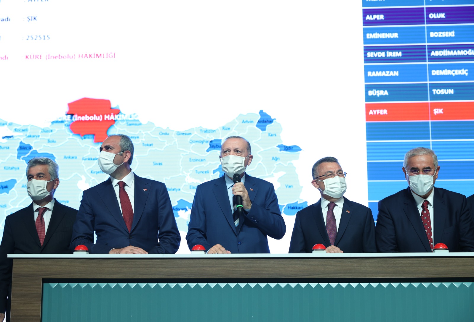 Cumhurbaşkanı Erdoğan'ın butona basmasının ardından 1015 adayın görev yerleri kura ile belirlendi. Törene, Cumhurbaşkanı Yardımcısı Fuat Oktay ve Adalet Bakanı Abdulhamit Gül de katıldı.