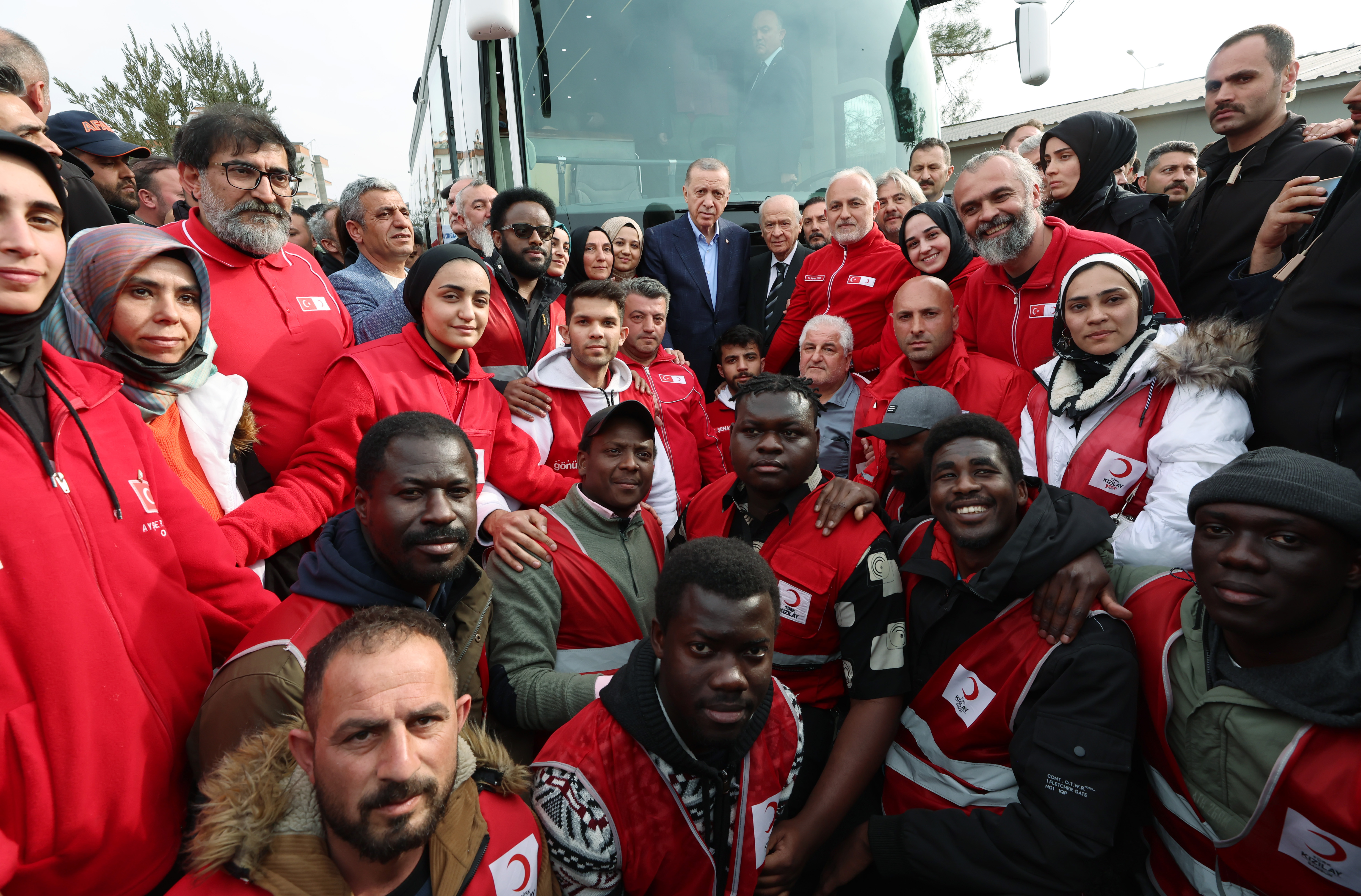 Cumhurbaşkanı Erdoğan, bakanların şehirde görevlendirdiği kamu personeli ve gönüllüler ile arama kurtarma ve yardım çalışmalarını düzene soktuklarını belirtti.