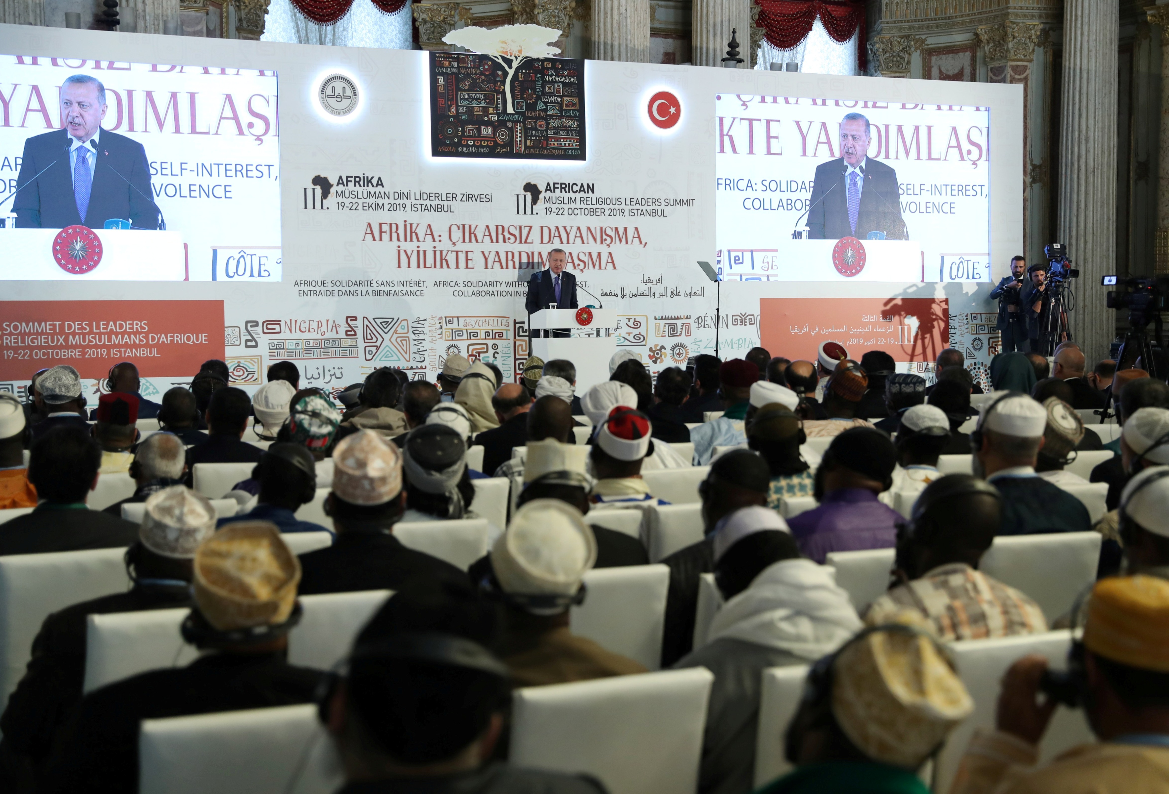 Cumhurbaşkanı Recep Tayyip Erdoğan, Diyanet İşleri Başkanlığınca düzenlenen "Afrika: Çıkarsız Dayanışma, İyilikte Yardımlaşma" konulu 3. Afrika Ülkeleri Müslüman Dini Liderler Zirvesi'nin açılışında katılımcılara hitap etti.