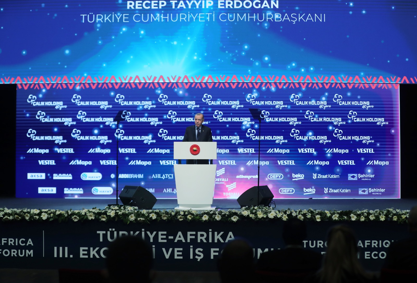 Cumhurbaşkanı Erdoğan, İstanbul Kongre Merkezi'nde düzenlenen Türkiye-Afrika 3. Ekonomi ve İş Forumu'ndaki konuşmasında, forumun üçüncüsünün yapılması vesilesiyle katılımcıları misafir etmekten duyduğu memnuniyeti dile getirdi.