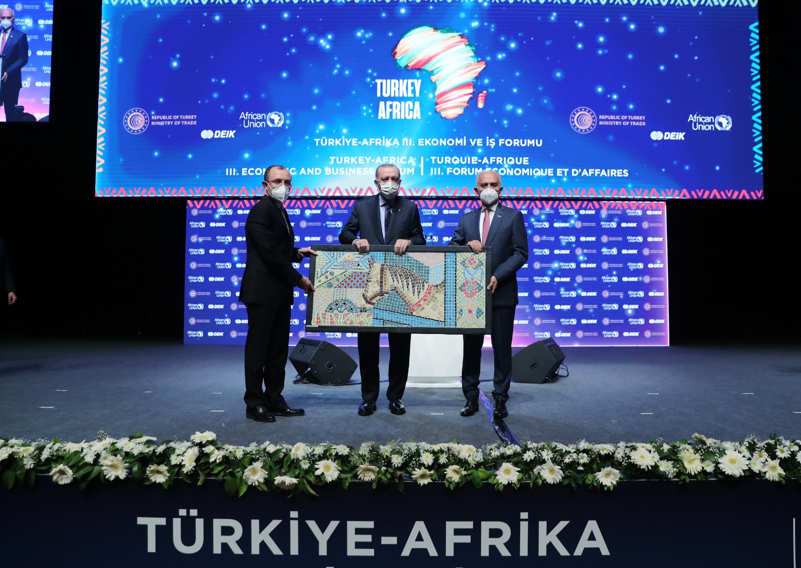 Yine bir dizi Afrika ülkesiyle de müzakereleri başlatmayı planlıyoruz. Afrika Kıtasal Serbest Ticaret Bölgesi Anlaşması'nın yürürlüğe girme ve uygulama süreçlerini de yakından takip ediyoruz. Türkiye olarak Afrika içi ticaretin geliştirilme çabalarını destekliyor, kıtayla iş yapan firmalarımızı yerelleşme hususunda teşvik ediyoruz. İş dünyamızın Afrika'yla ticari iş birliklerini ilerletirken bu anlaşmanın getireceği yeni şartlara göre strateji belirlemeleri son derece önemlidir. Öte yandan, finans ve bankacılık yönü eksik kalan ticaret ve yatırımın ilişkilerde ivme kaybına yol açması kaçınılmazdır. Gerek Afrika'daki güçlü finans kuruluşlarının gerekse Türk bankacılık sektörünün bu konuda daha vizyoner davranmasını bekliyoruz. Ticaretle beraber karşılıklı yatırım ilişkilerimiz de güçlendikçe inşallah halklarımız arasındaki kültürel yakınlaşma da hızlanacaktır. 17-18 Aralık 2021 tarihlerinde yine İstanbul'da düzenleyeceğimiz 3. Türkiye-Afrika Ortaklık Zirvesi'nin tüm bu başlıklarda bizlere yeni ufuklar kazandıracağına inanıyorum."