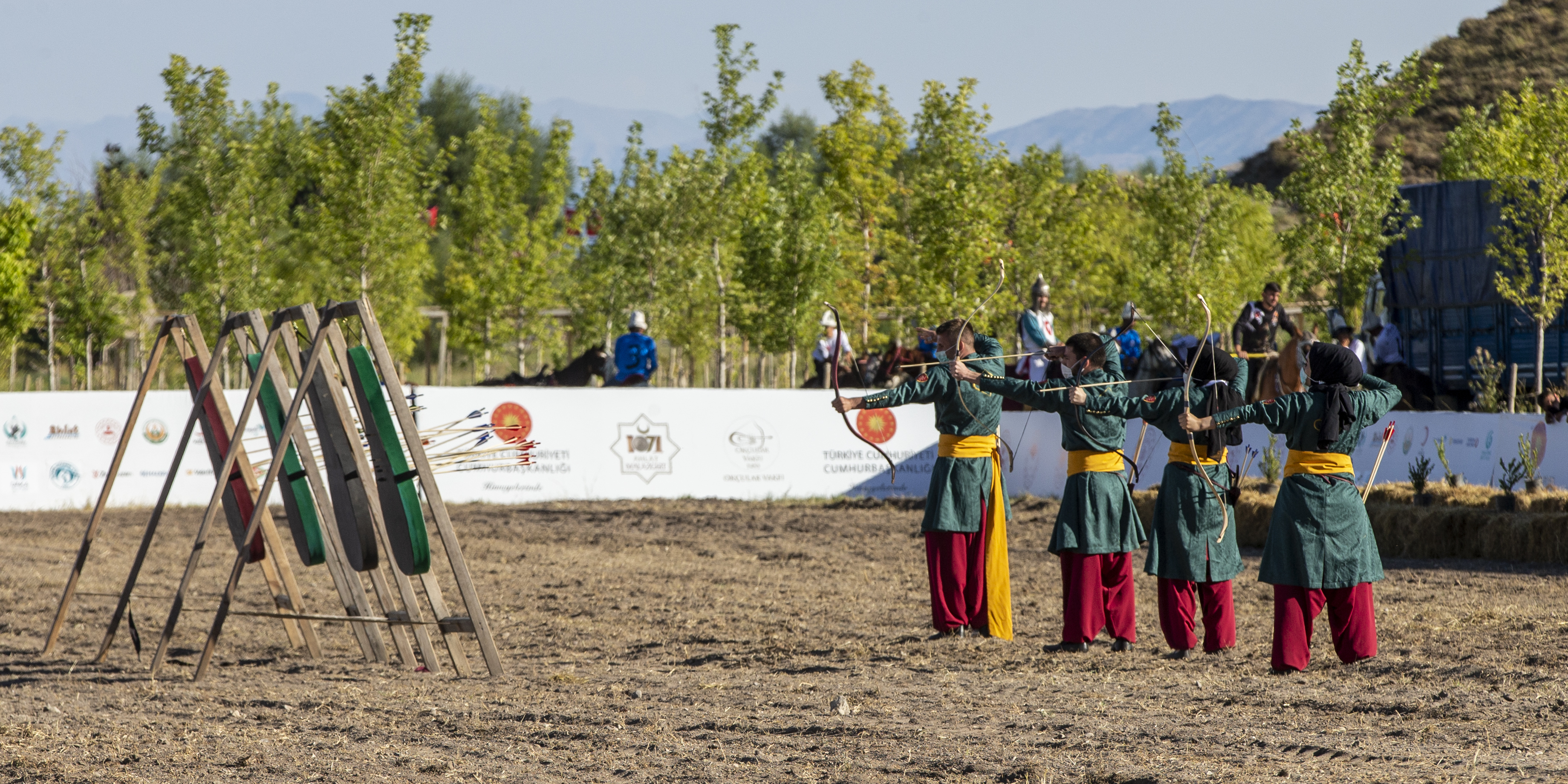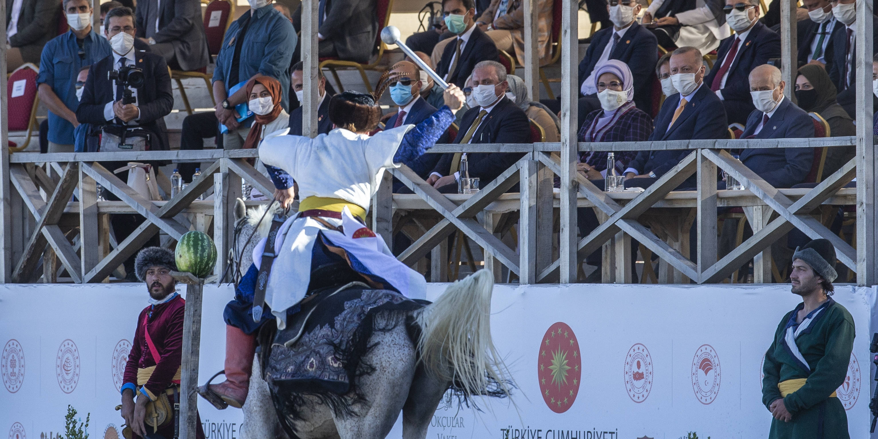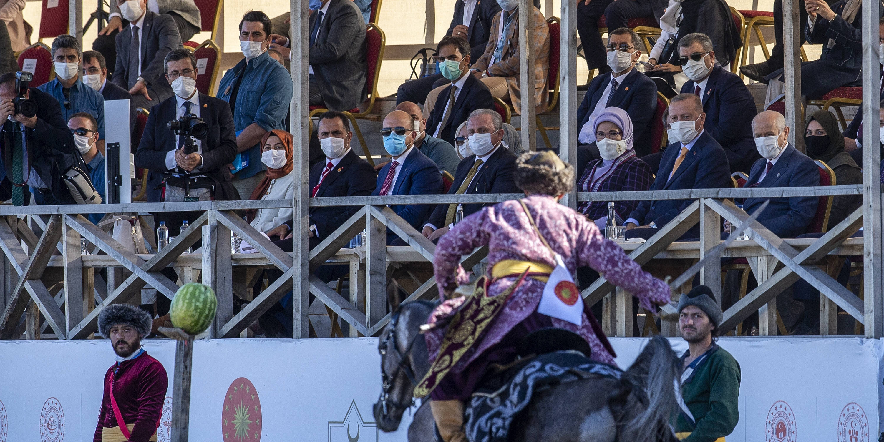 Cumhurbaşkanı Recep Tayyip Erdoğan, Malazgirt Zaferi'nin 949'uncu yıl dönümü dolayısıyla Okçular Vakfı tarafından Bitlis'in Ahlat ilçesinde düzenlenen etkinlikleri izledi.