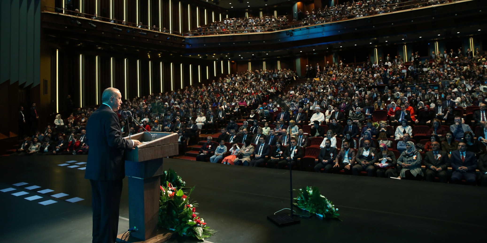 Cumhurbaşkanı Erdoğan, değerler eğitiminin, kağıt üzerinden aktarılacak bir haslet olmadığının altını çizerek, "Zira 'bal, bal' demekle ağız tatlanmaz. Balı yediğiniz anda ağzı tatlatırsınız. Yaşayarak, yaşatılarak, öğretilen ve öğrenilen bir süreçtir bu." diye konuştu.