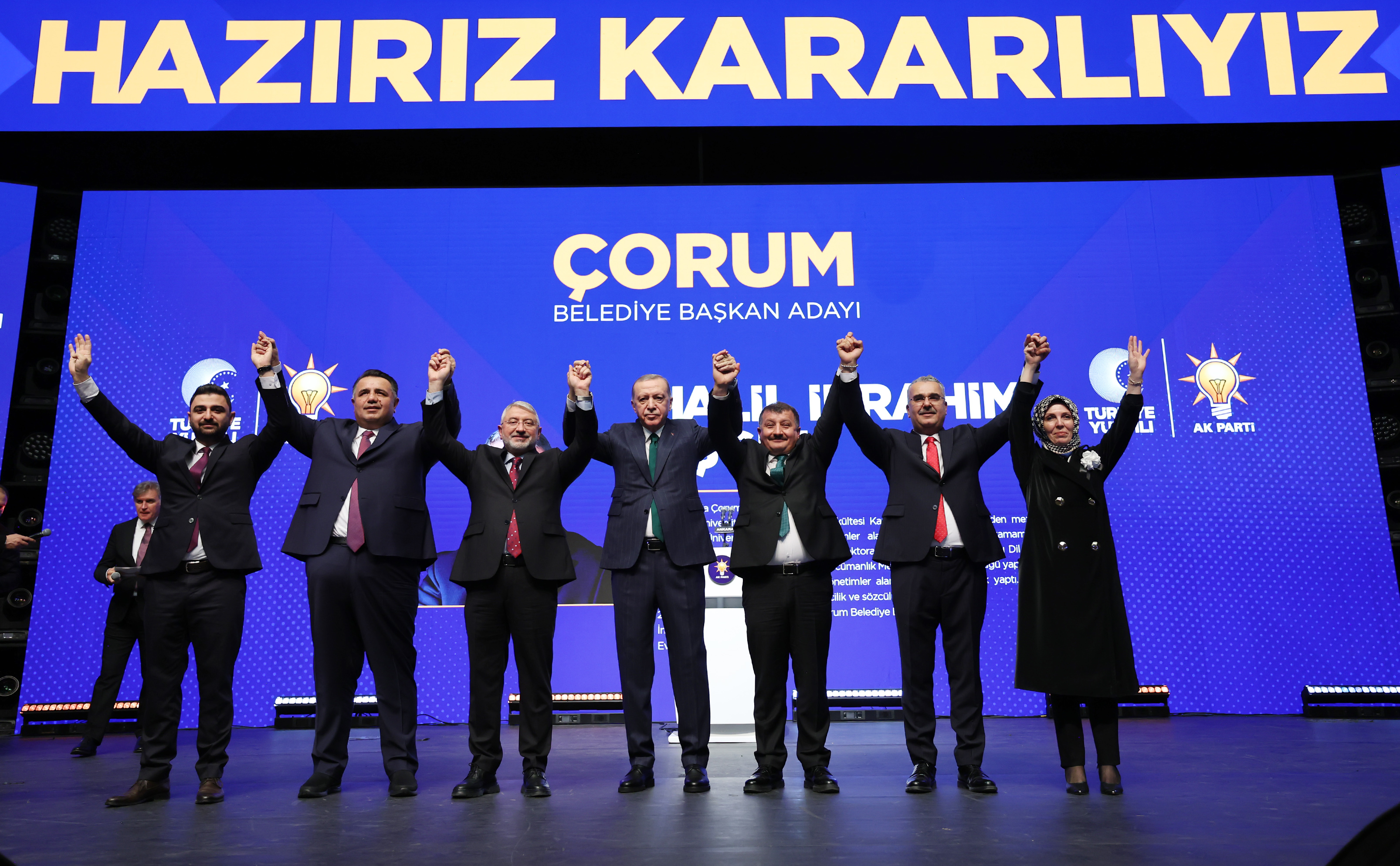 Cumhurbaşkanı Erdoğan, "Önümüzdeki 31 Mart seçimlerine, AK Parti ve Cumhur İttifakı olarak yine bu hassasiyetle hazırlanıyoruz. Adaylarımızdan seçim beyannamemize kadar her işimizi milletimizle istişare içinde, milletimizin görüşlerini alarak yürütüyoruz. Milletimiz neyi uygun gördüyse bizden beklentileri neyse onu yapmanın, onu hayata geçirmenin derdindeyiz." diye konuştu.