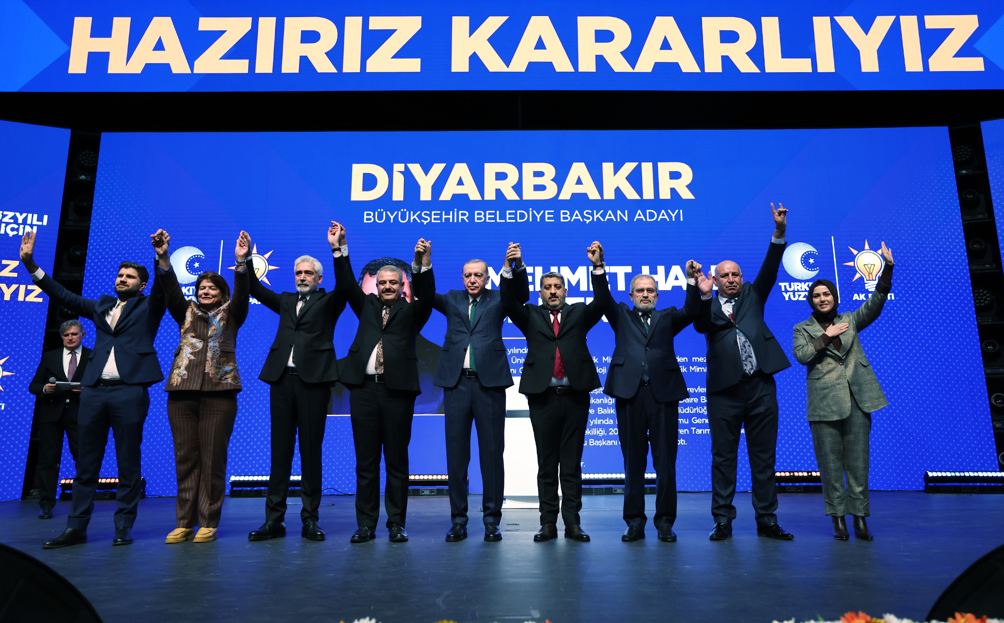 "Adana Büyükşehir Belediye Başkan adayı Fatih Mehmet Kocaispir, Diyarbakır Büyükşehir Belediye Başkan adayı Mehmet Halis Bilden, Gaziantep Büyükşehir Belediye Başkan adayı Fatma Şahin, Hatay Büyükşehir Belediye Başkan adayı Mehmet Öntürk, Kahramanmaraş Büyükşehir Belediye Başkan adayı Fırat Görgel, Kayseri Büyükşehir Belediye Başkan adayı Memduh Büyükkılıç, Konya Büyükşehir Belediye Başkan adayı Uğur İbrahim Altay, Malatya Büyükşehir Belediye Başkan adayı Sami Er, Mardin Büyükşehir Belediye Başkan adayı Abdullah Erin, Sakarya Büyükşehir Belediye Başkan adayı Yusuf Alemdar, Şanlıurfa Büyükşehir Belediye Başkan adayı Zeynel Abidin Beyazgül, Tekirdağ Büyükşehir Belediye Başkan adayı Cüneyt Yüksel, Trabzon Büyükşehir Belediye Başkan adayı Ahmet Metin Genç ve Van Büyükşehir Belediye Başkan adayı Abdulahat Arvas."