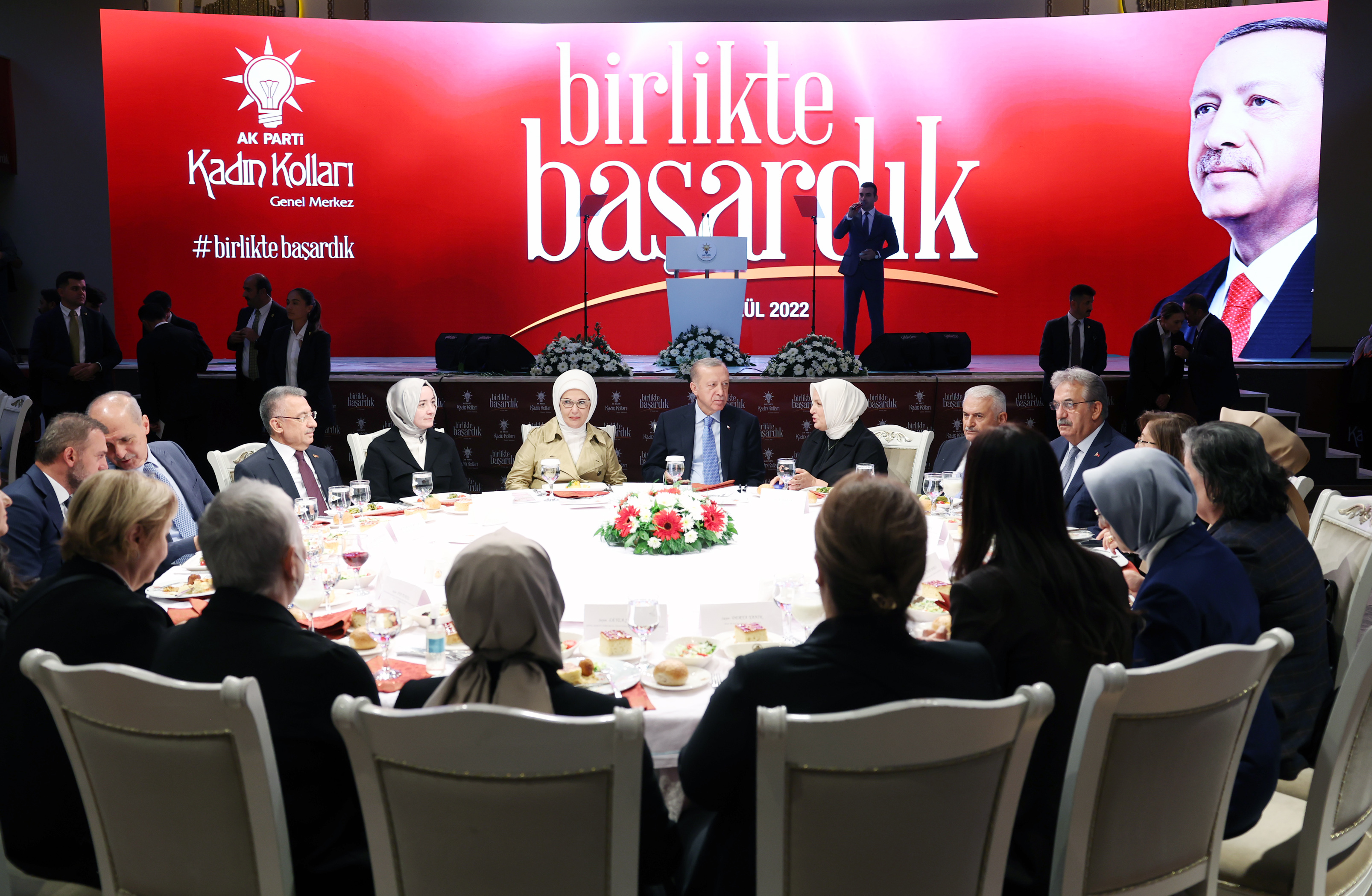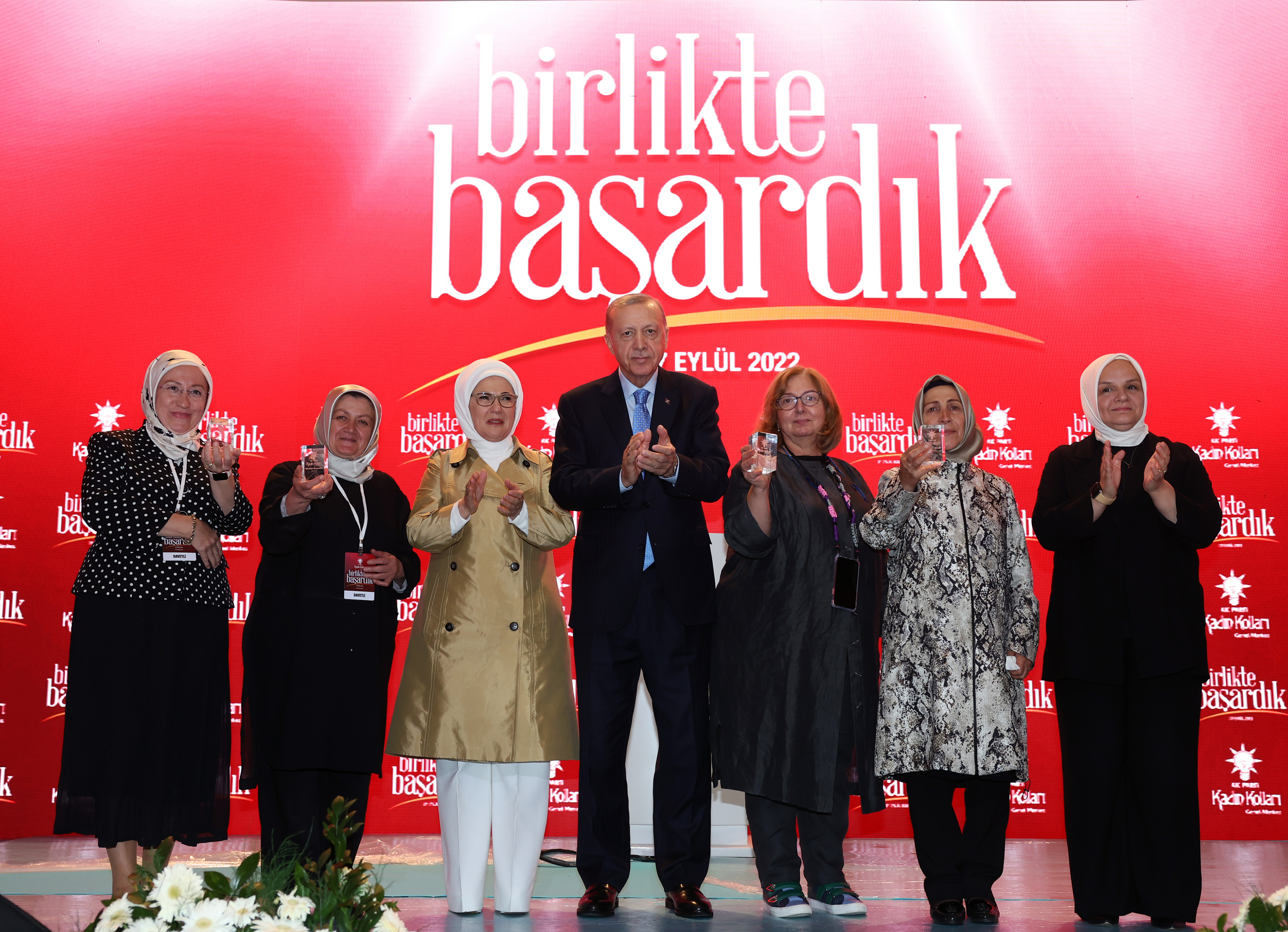 Hâlihazırda Türkiye'nin tüm illerinde, ilçelerinde, mahallelerinde, sokaklarında, hanelerinde AK Parti davasını millete anlatan kadınların her birine teşekkür eden Cumhurbaşkanı Erdoğan, "AK Parti, Türk siyasi hayatında en yaygın ve etkin kadın teşkilatlanmasını kuran, genel merkezinden sandık kurullarına kadar tüm kademelerinde kadınlara en çok yer veren partidir. Bugüne kadar katıldığımız seçimlerin istisnasız tamamından birinci parti olarak çıkmamızda, kadınlarımızın, bilhassa hanelere girerek yürüttüğü gönül kazanma faaliyetlerinin çok büyük katkısı vardır. Nitekim sadece ülkemizde değil, dünyada pek çok siyasi parti, AK Parti'nin kadın teşkilatlanması modelini örnek alarak, kendisine uyarlamaya çalışmıştır." dedi.
