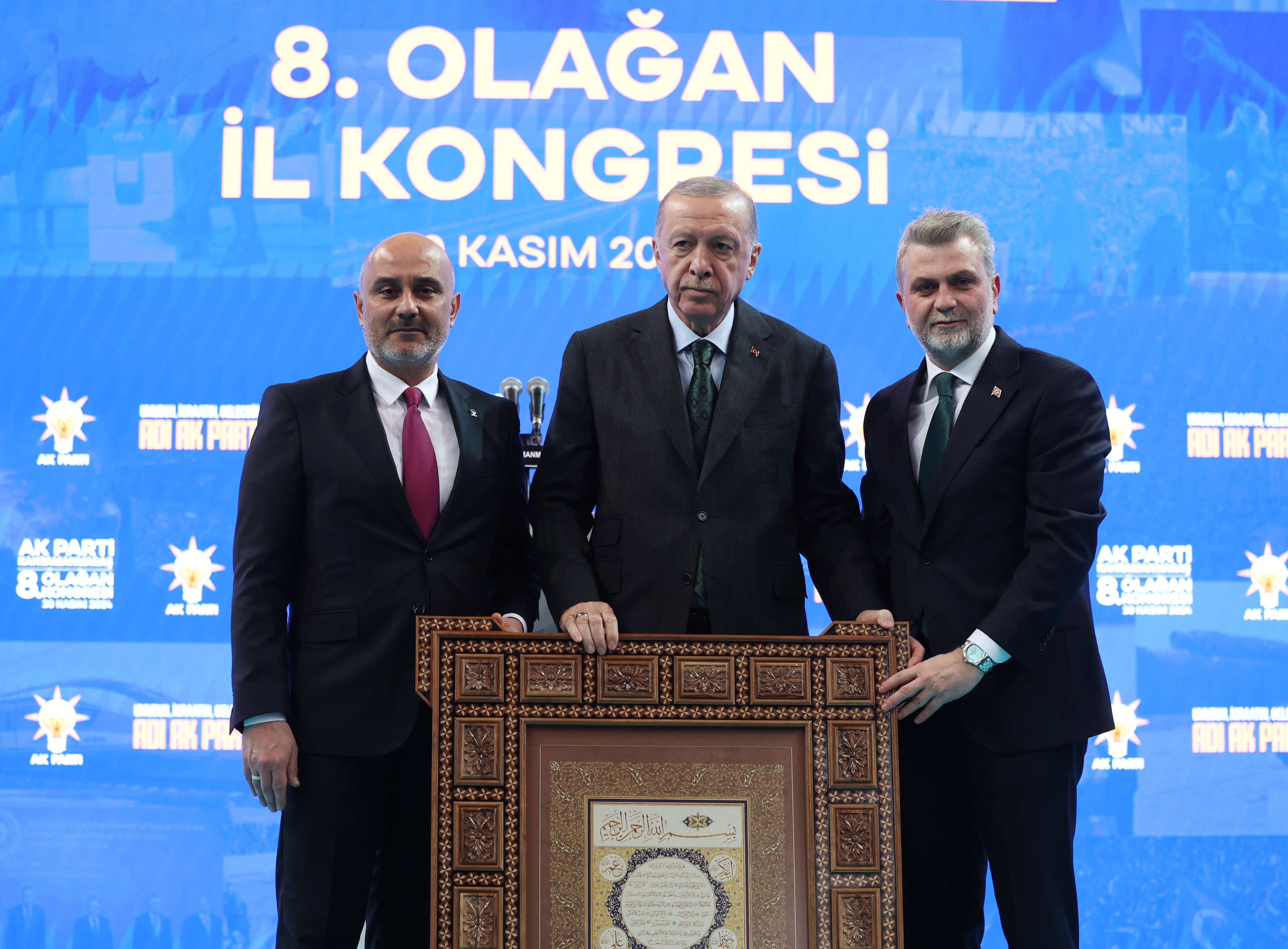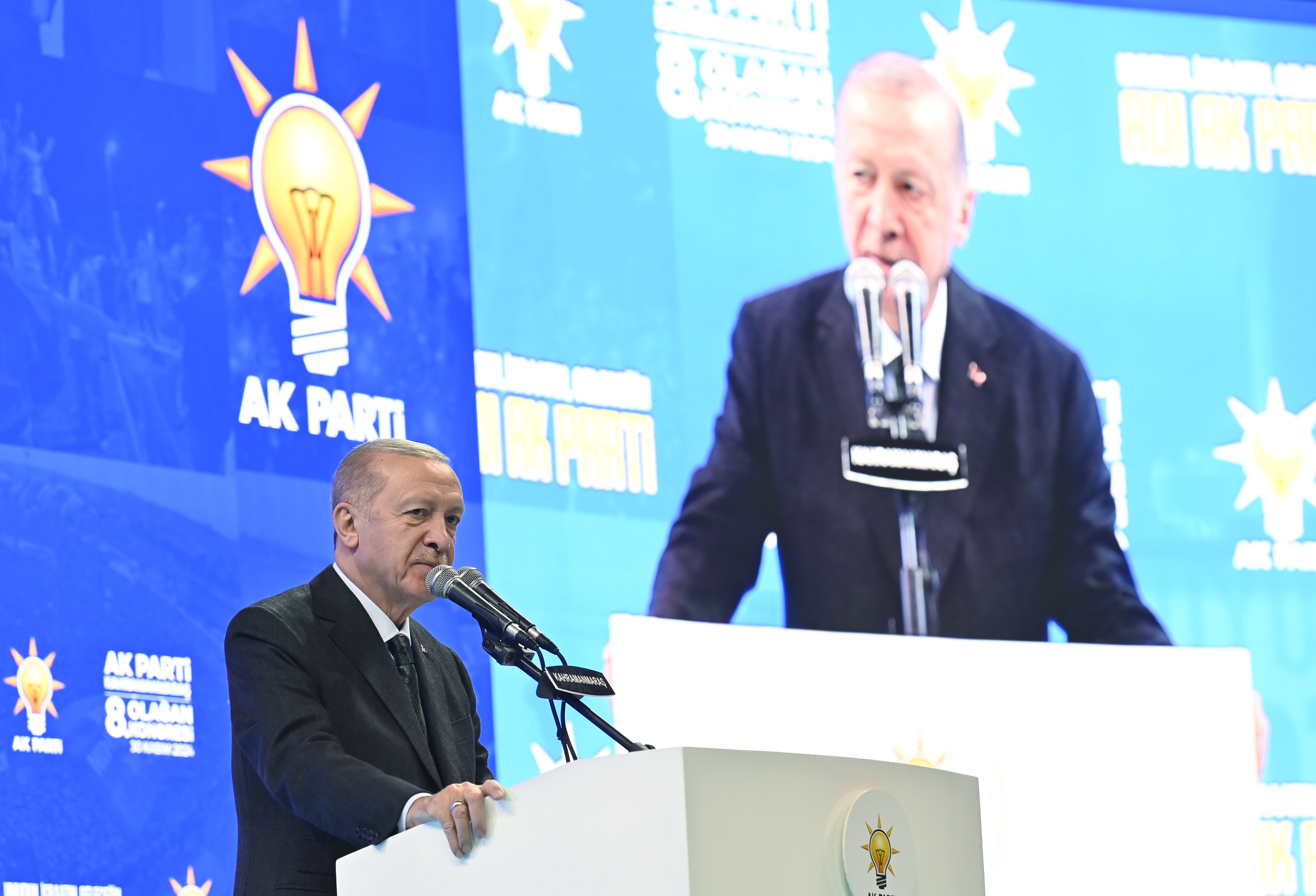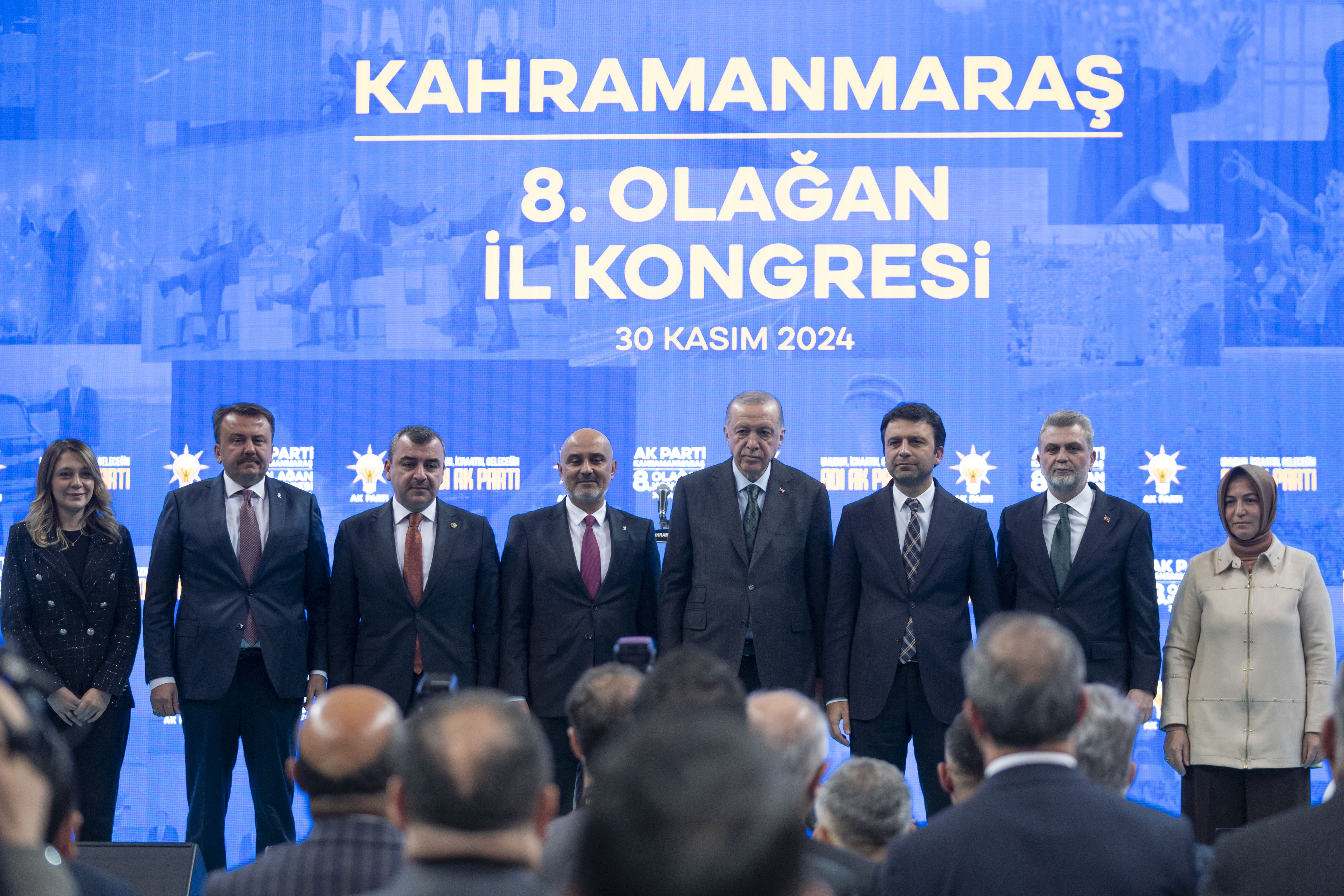 "Bildiğimiz, sevdiğimiz, mamur ve bayındır Maraş'ı, adeta küllerinden yeniden doğarcasına, beraberce yeniden inşa ediyoruz. Kongremize gelmeden önce deprem konutlarımızın kura çekiliş törenini gerçekleştirdik. 155 bininci konutumuzun kurasını çekerek anahtarını hak sahibi kardeşimize teslim ettik. Bu konutların 3 bin 499'u Kahramanmaraş'taydı. Ayrıca şehrimizde 17 bin 500 kişilik stadyumun da olduğu büyük bir spor kompleksinin yapımına başlıyoruz. Hem konutlarımızın hem de spor tesisimizin şimdiden sizlere hayırlı olmasını diliyorum."