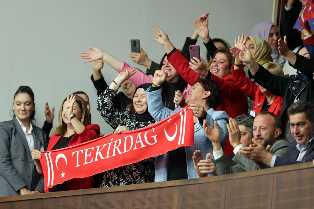 Cumhurbaşkanı Erdoğan'ın bu sözleri partililerce ayakta alkışlandı.