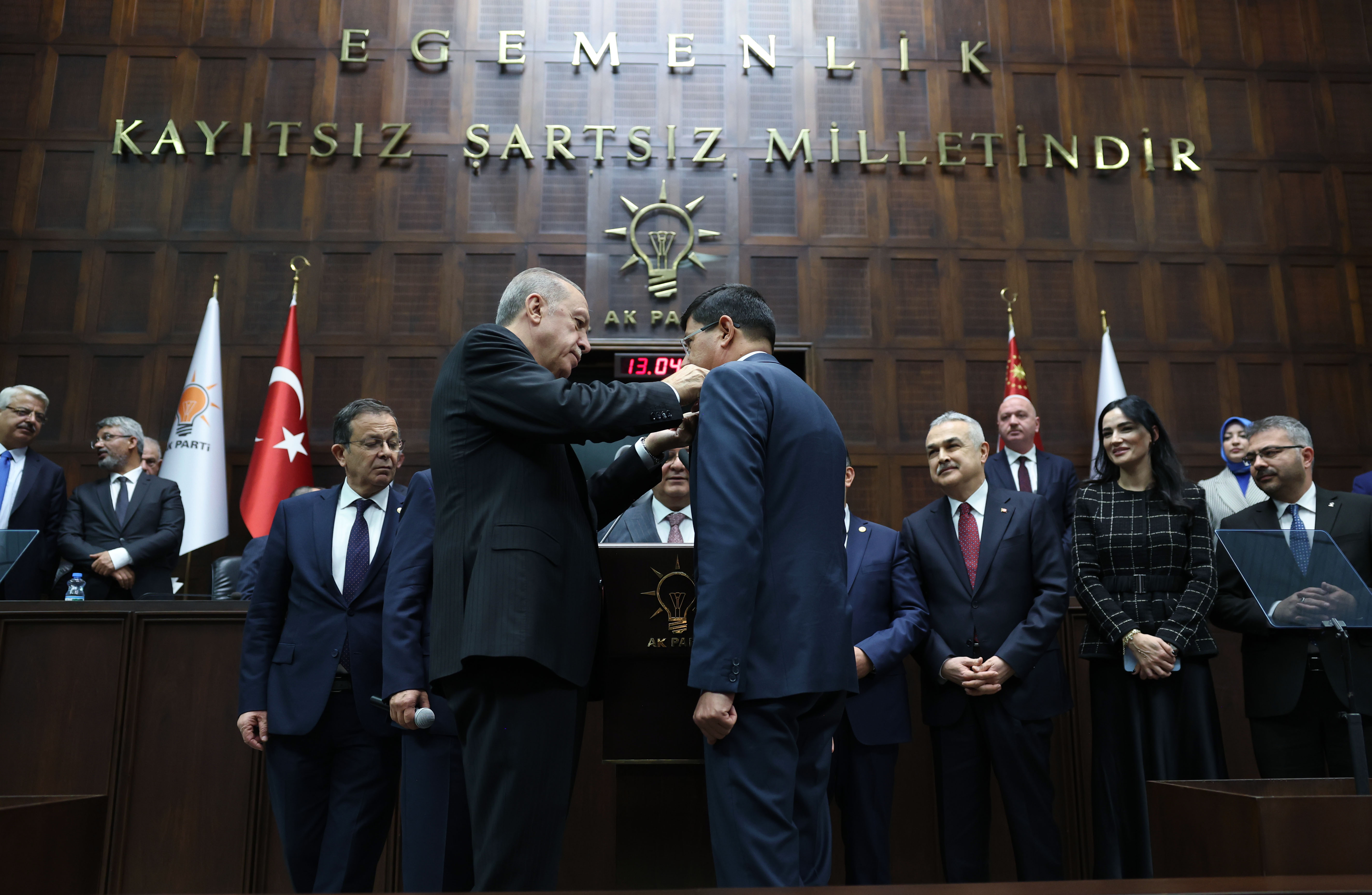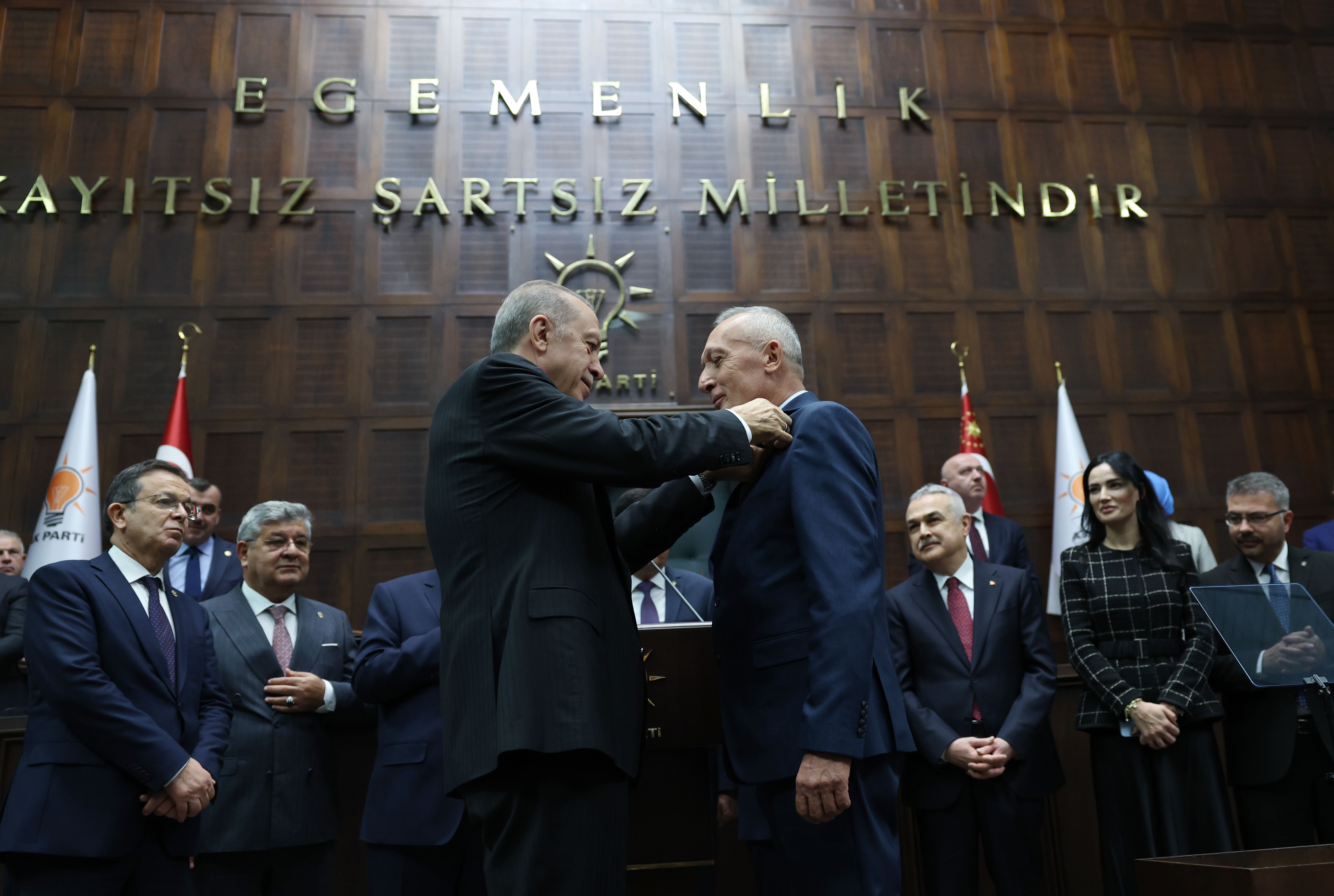 Cumhurbaşkanı Erdoğan, daha sonra AK Parti'ye katılan Nazilli Belediye Başkanı Kürşat Engin Özcan'a rozetini taktı.