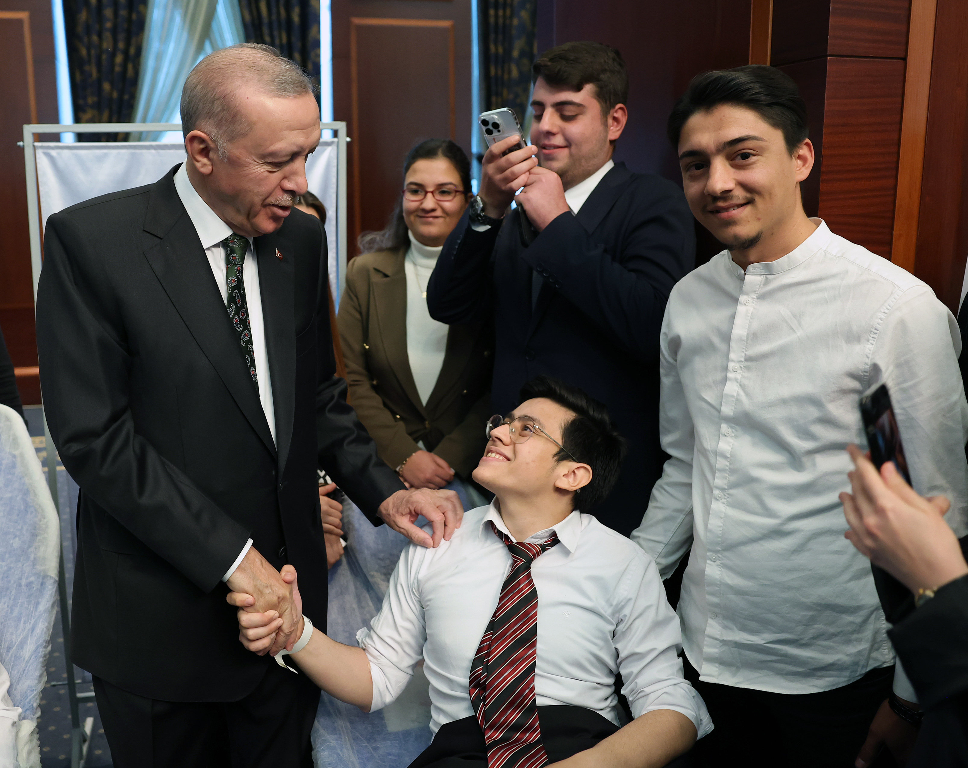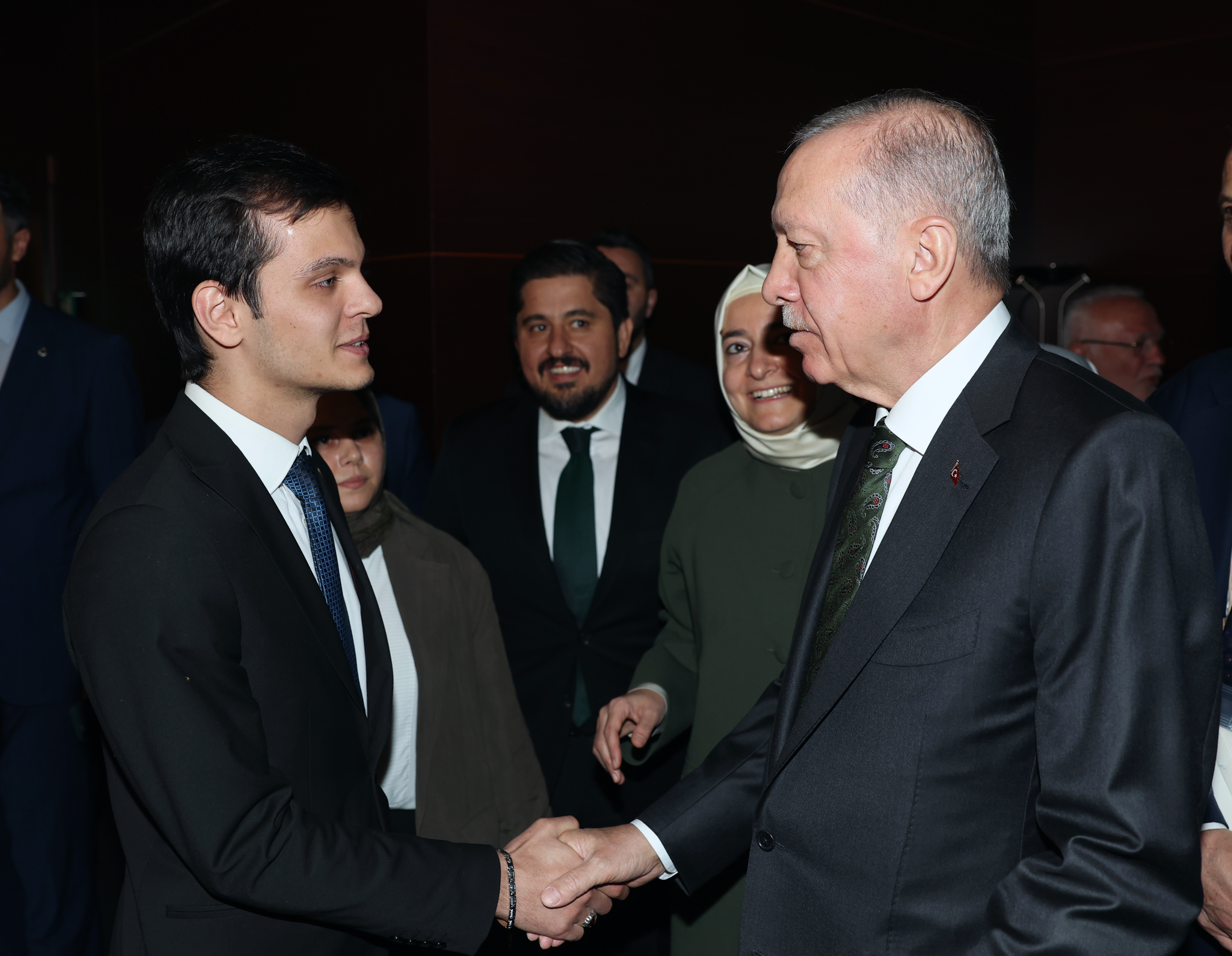 Cumhurbaşkanı Erdoğan, burada, İstanbul'da Aralık 2023'te düzenlenen Avrupa Wushu Kungfu Şampiyonası'nda şampiyon olduktan sonra podyumda Filistin bayrağı açarak dabke dansı yatığı için şampiyonluğu iptal edilen Türk wushu kungfu sporcusu Necmettin Erbakan Akyüz ile de bir araya geldi.