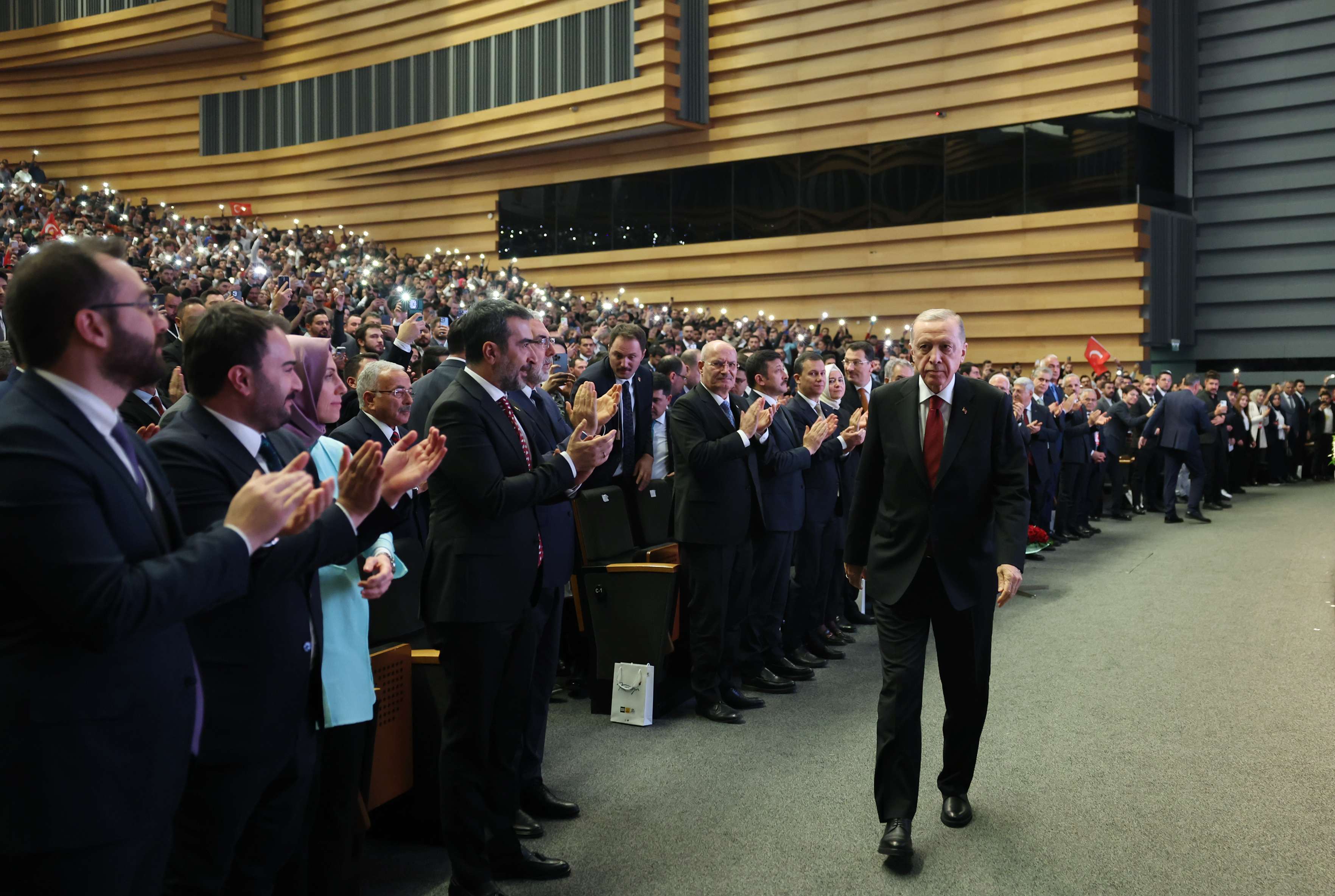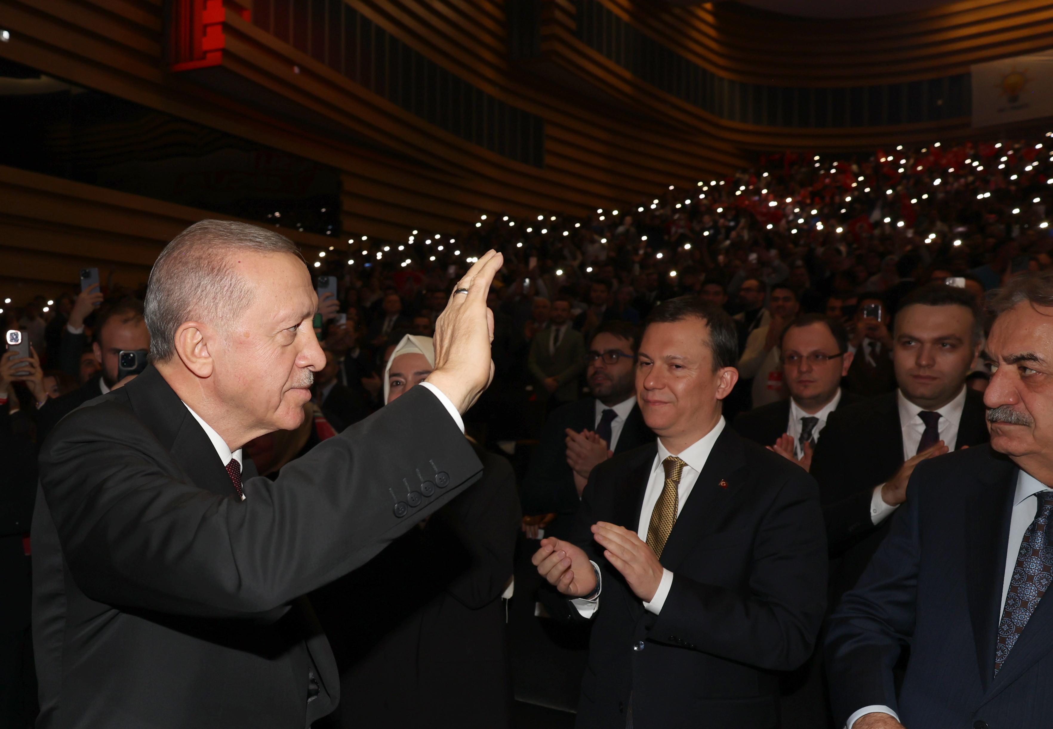 Cumhurbaşkanı Erdoğan, "Tek millet, tek bayrak, tek vatan, tek devlet, bir olacağız, iri olacağız, diri olacağız, kardeş olacağız. Hep birlikte Türkiye olacağız." ifadelerini kullanarak, salondakilere "31 Mart'ta tarih yazmaya var mıyız? 31 Mart'ta hep yeni, hep ileri diyerek koşmaya var mıyız? 31 Mart'ta belediyelerde de Türkiye Yüzyılı'nı başlatmaya var mıyız? 31 Mart'ta yeniden İstanbul diyor muyuz? 31 Mart'ta yeniden Ankara, yeniden Antalya diyor muyuz? Rabb'im sizlerden razı olsun." dedi.