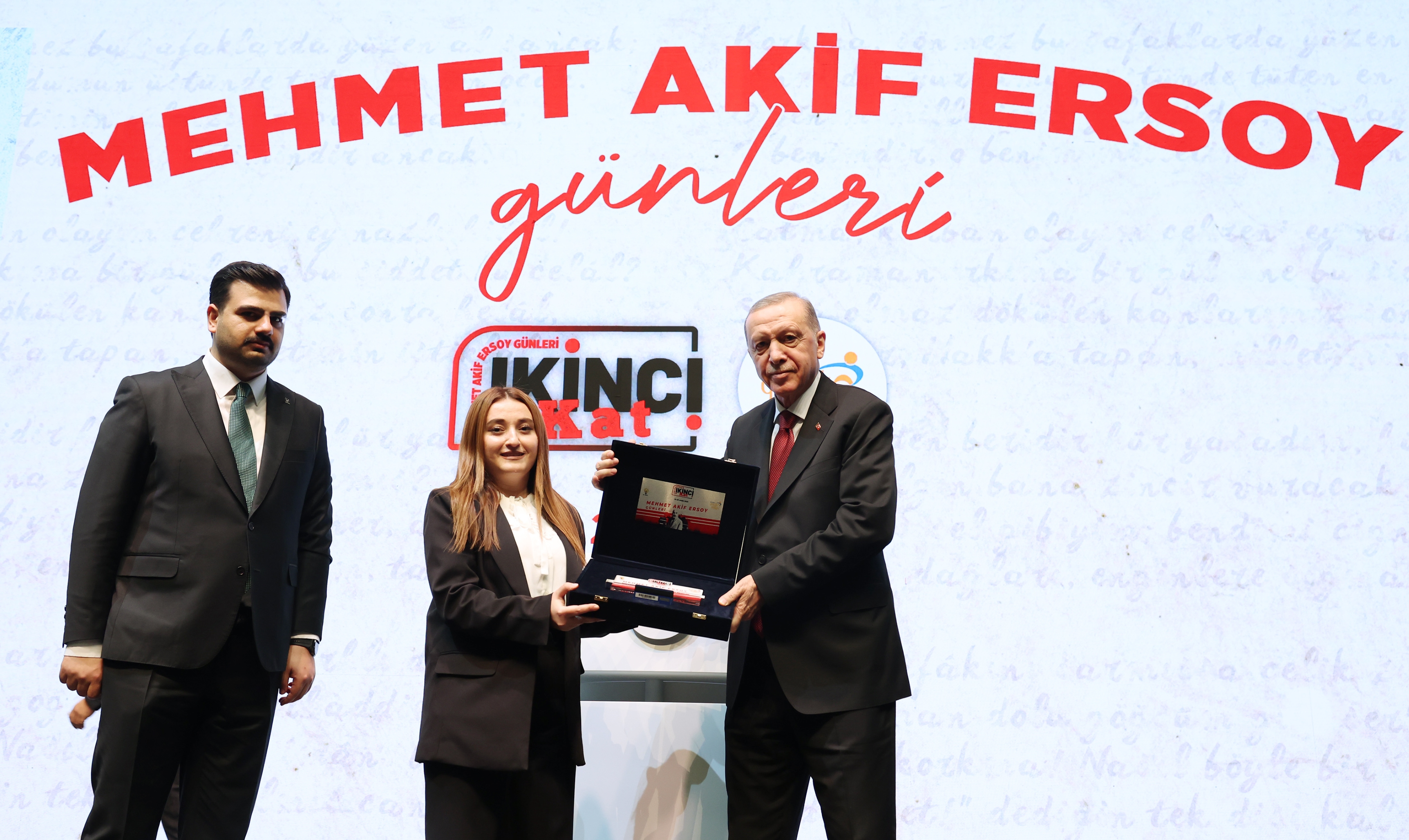 İstiklal Harbi'nin en müşkül, en zor günlerinde Akif'in, "Arkadaş, yurduma alçakları uğratma sakın, siper et gövdeni dursun bu hayasızca akın, doğacaktır sana vadettiği günler Hakk'ın, kim bilir belki yarın, belki yarından da yakın." diye seslendiğini anımsatan Cumhurbaşkanı Erdoğan, şunları kaydetti: