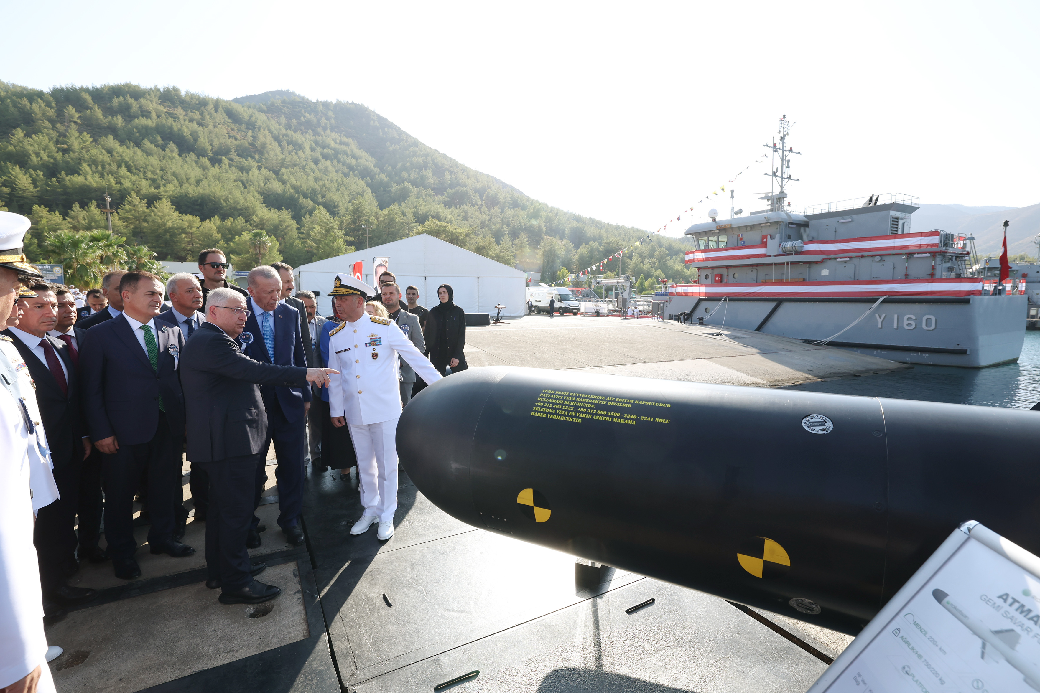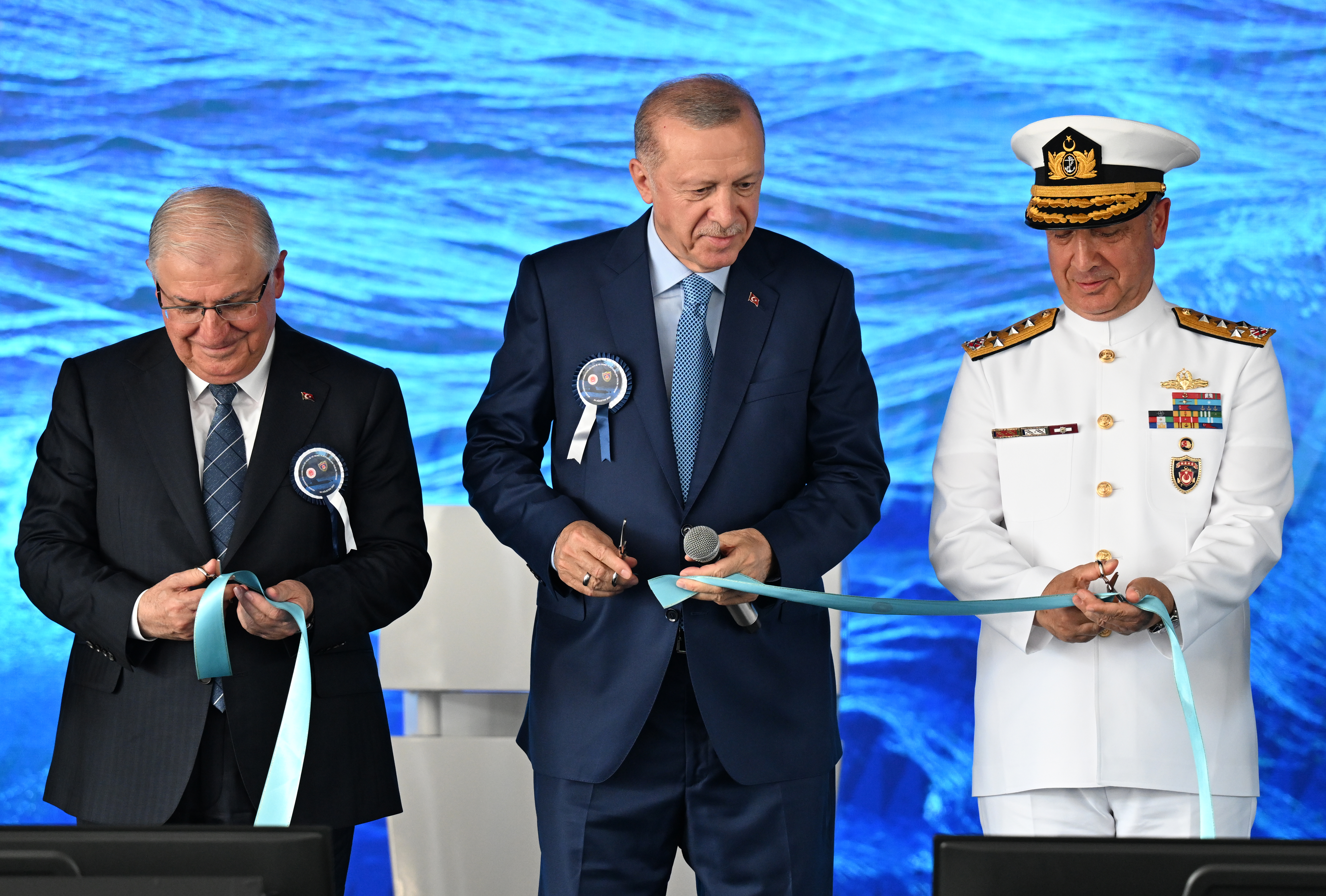 Cumhurbaşkanı Recep Tayyip Erdoğan, Muğla'nın Marmaris ilçesinde, Aksaz Tersanesi Komutanlığı Açılış ve Deniz Platformları Teslim Töreni'ne katıldı.