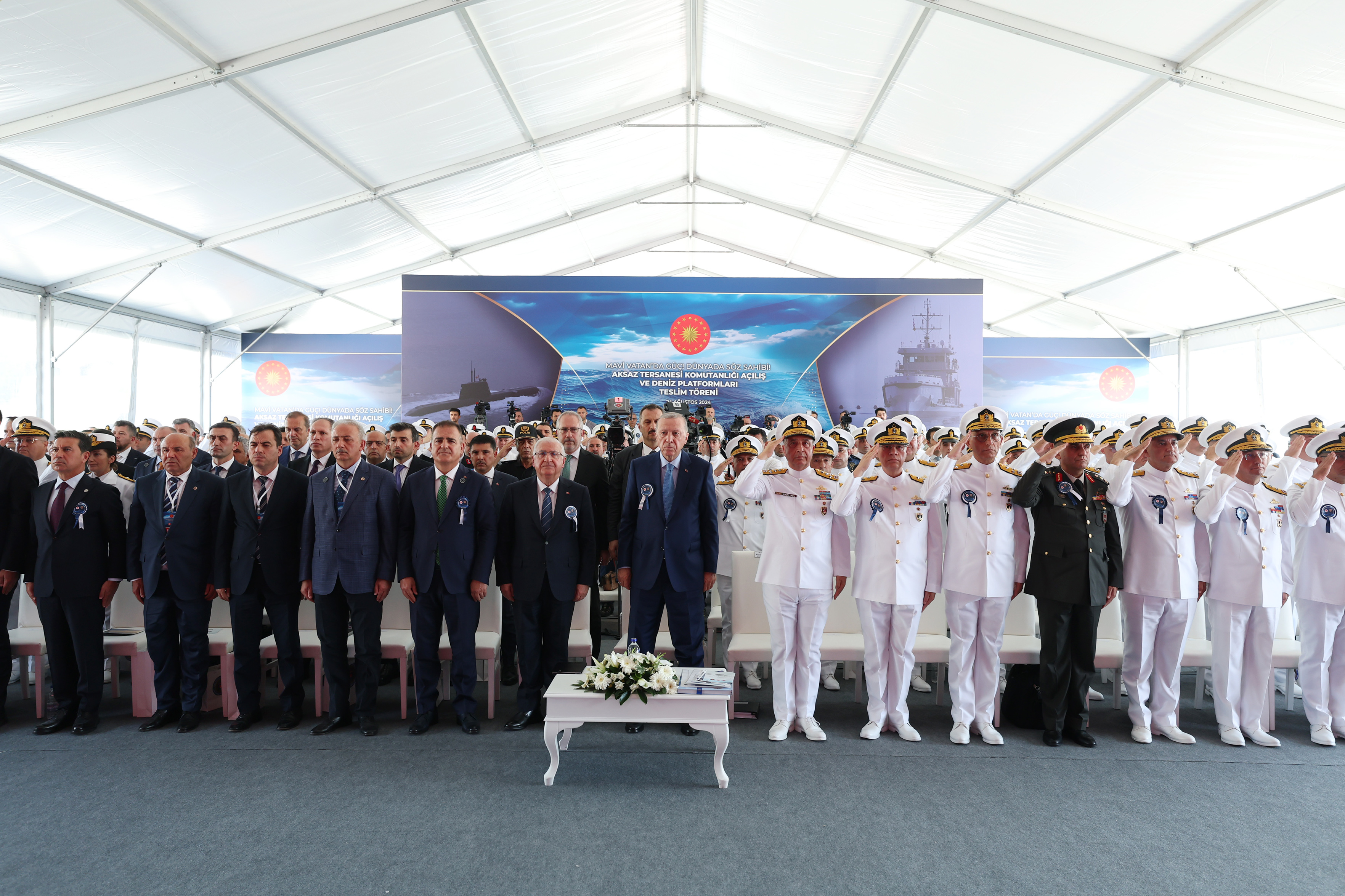Savunma sanayisi alanında görev yapanları tebrik eden Cumhurbaşkanı Erdoğan, deniz platformları ve tersanede devlete sadakatle hizmet edecek tüm askerler, mühendisler ve işçilere başarılar diledi.