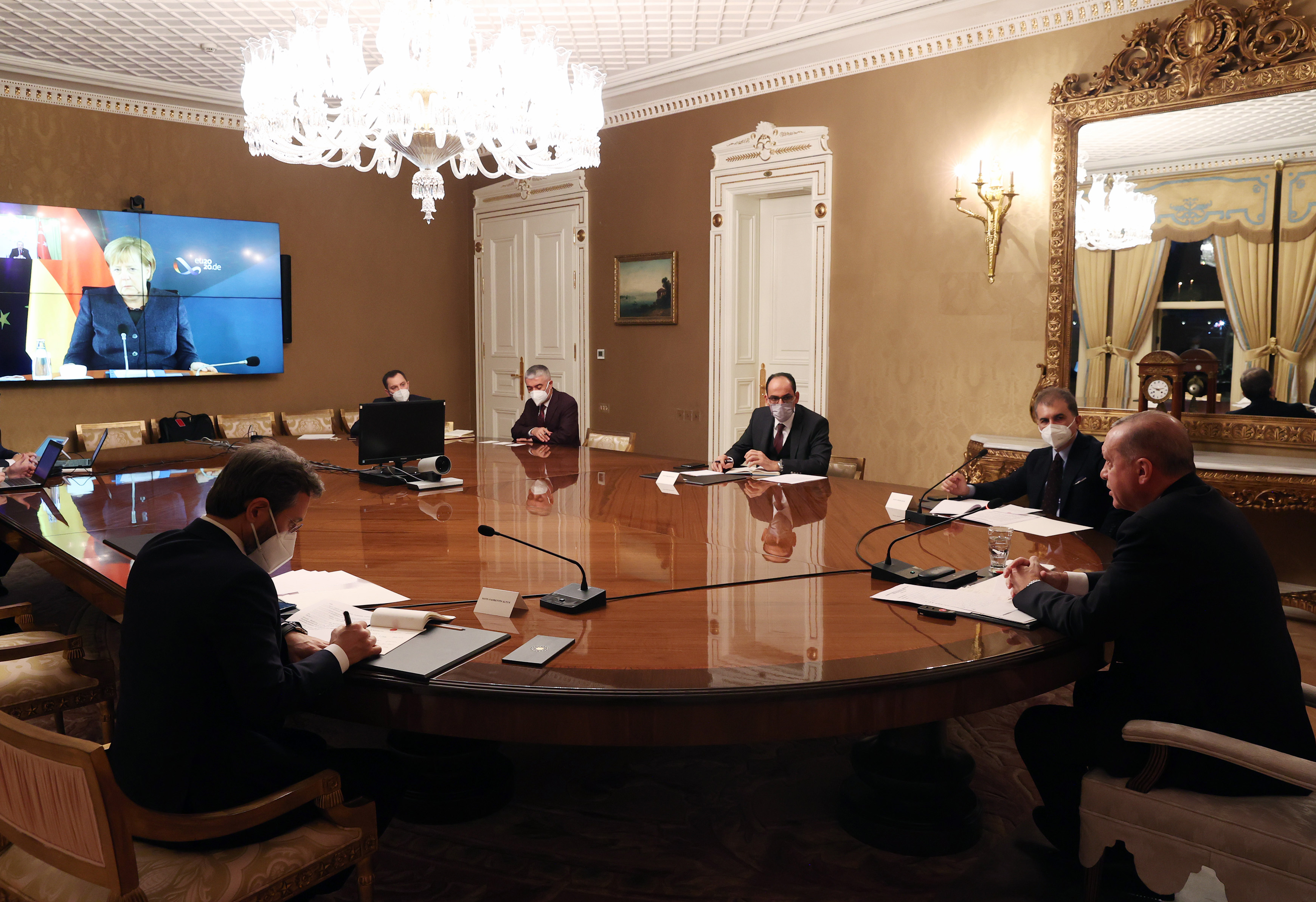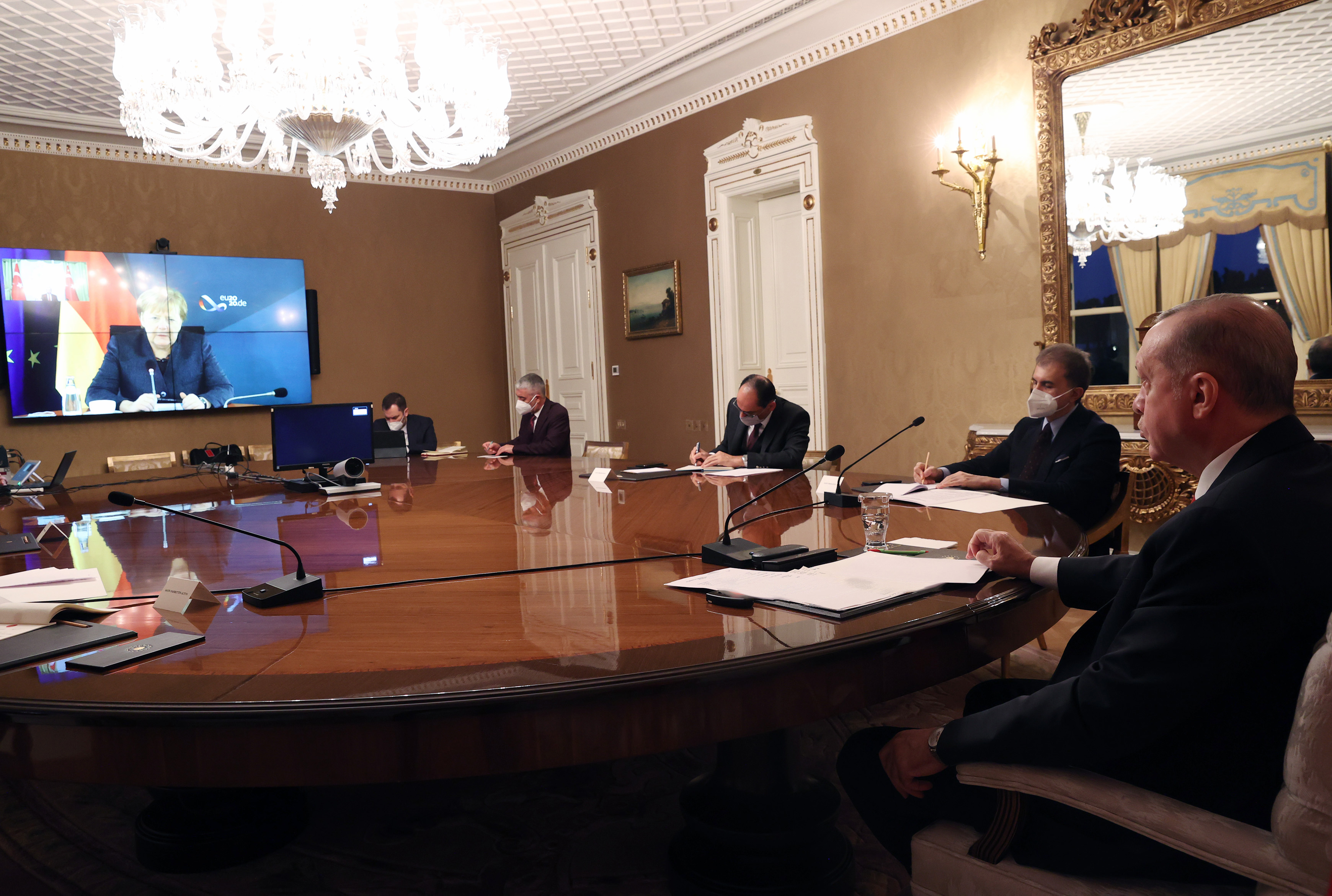 Cumhurbaşkanı Recep Tayyip Erdoğan, Almanya Başbakanı Angela Merkel ile video konferans görüşmesi gerçekleştirdi.