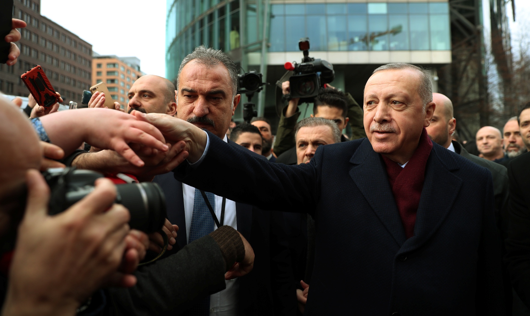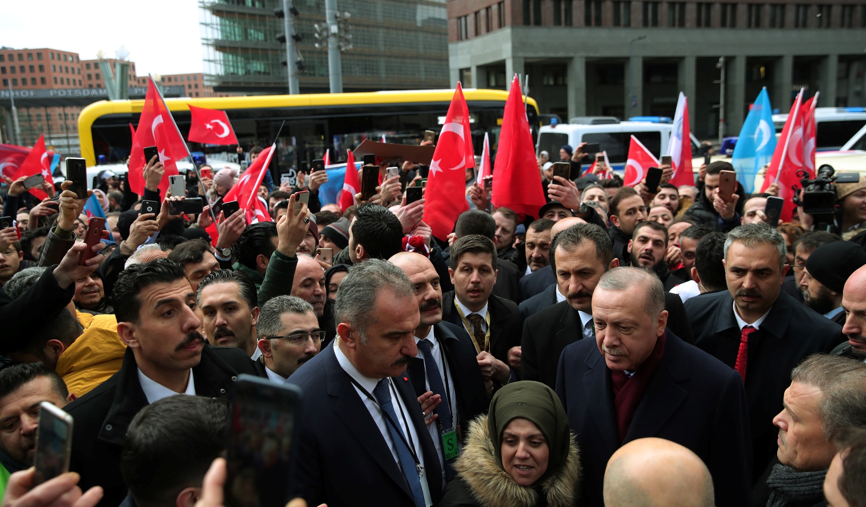 Erdoğan ile Milli Savunma Bakanı Hulusi Akar, İletişim Başkanı Fahrettin Altun, Milli İstihbarat Teşkilatı Başkanı Hakan Fidan ve Türkiye'nin Libya Özel Temsilcisi ve AK Parti Ankara Milletvekili Emrullah İşler de Berlin'e ulaştı.