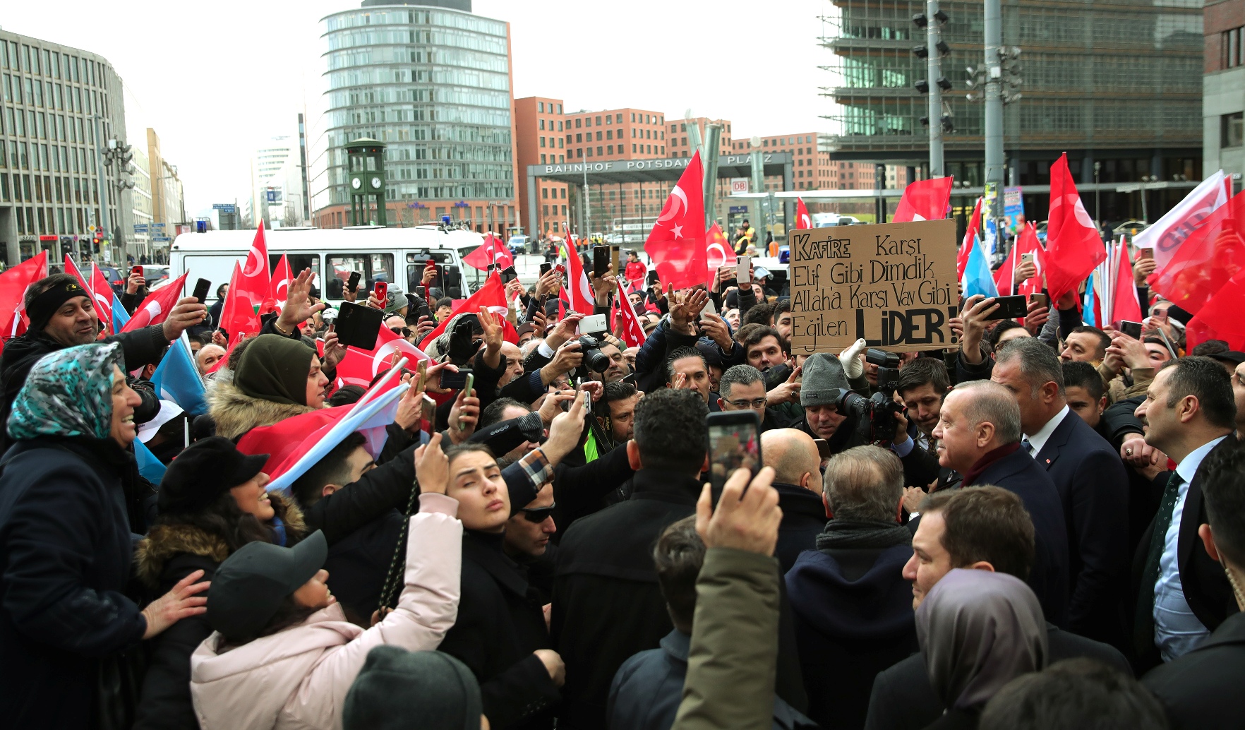 Cumhurbaşkanı Erdoğan'a, Berlin'de konaklayacağı otele gelişinde Almanya'da yaşayan Türkler tarafından sevgi gösterisinde bulunuldu.