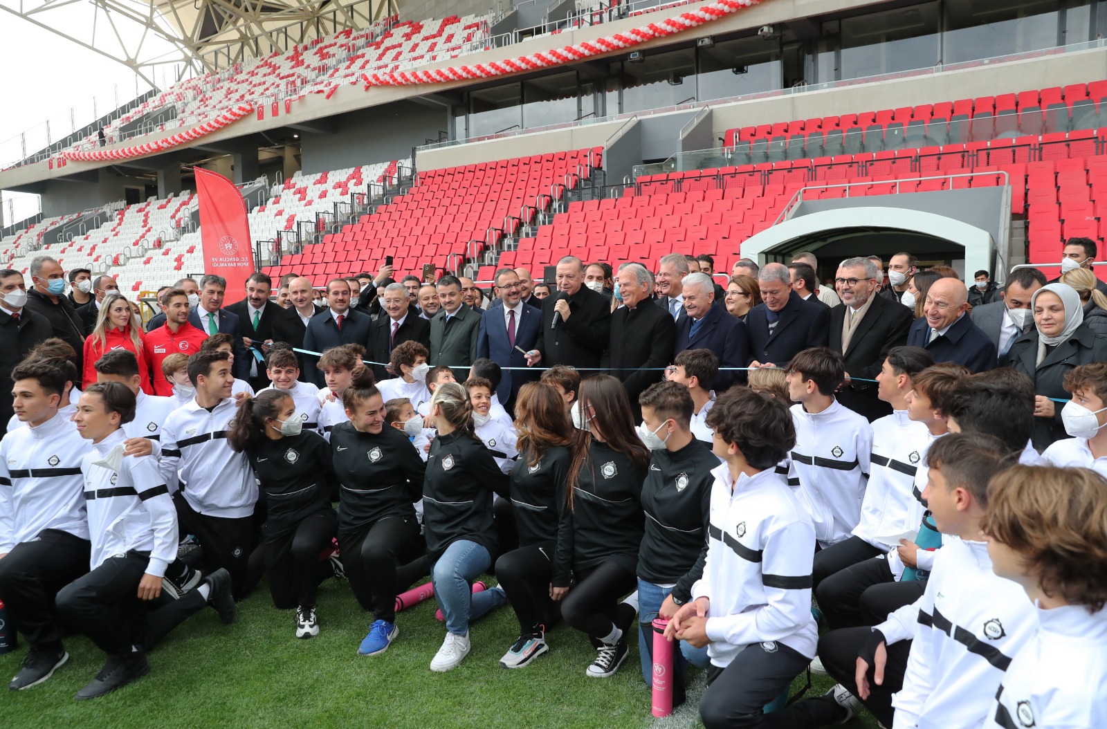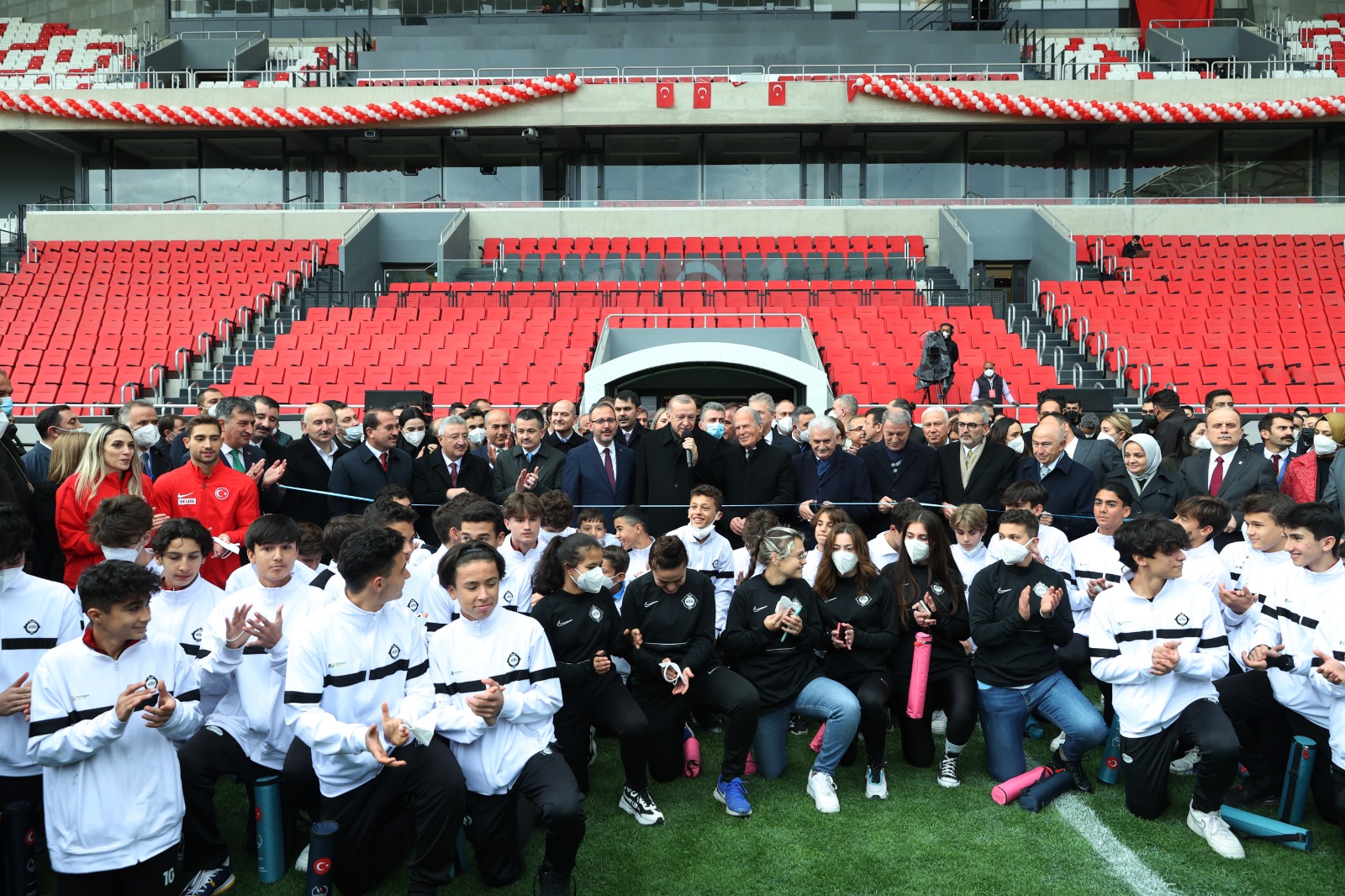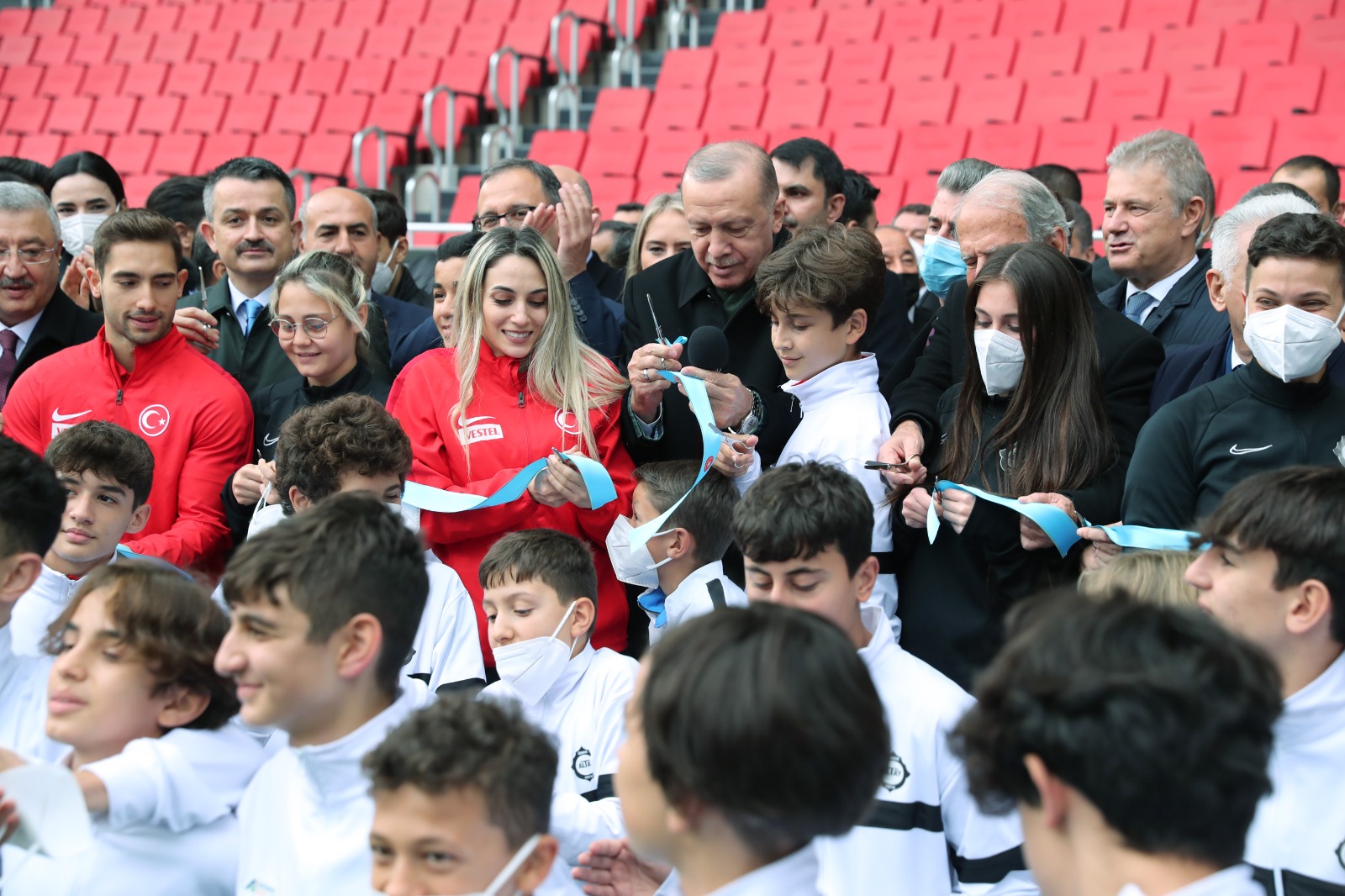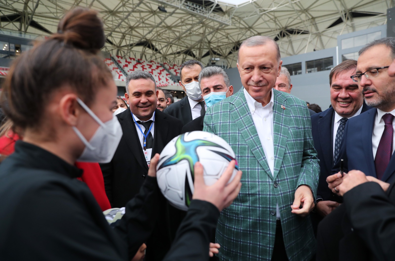Altay'ın altyapı ve kadın futbol takımı oyuncularıyla milli jimnastikçiler İbrahim Çolak ve Göksu Üçtaş Şanlı'yı da kurdele kesimine davet eden Cumhurbaşkanı Erdoğan, buradaki konuşmasında Alsancak Mustafa Denizli Stadı'nın açılışını yaptıklarını belirterek, şunları kaydetti: