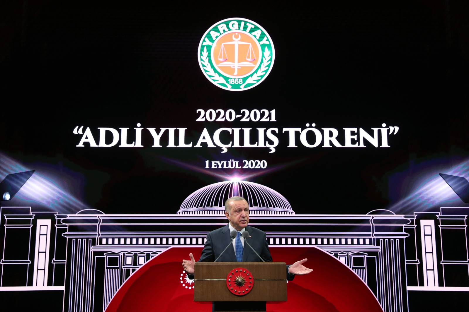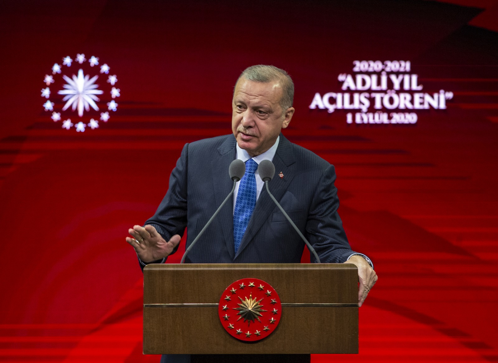 Cumhurbaşkanı Erdoğan, Beştepe Millet Kongre ve Kültür Merkezi'nde düzenlenen "2020-2021 Adli Yıl Açılış Töreni"ndeki konuşmasına, yeni adli yılın, yargı mensupları başta olmak üzere, ülke ve millet için hayırlara vesile olmasını dileyerek başladı.