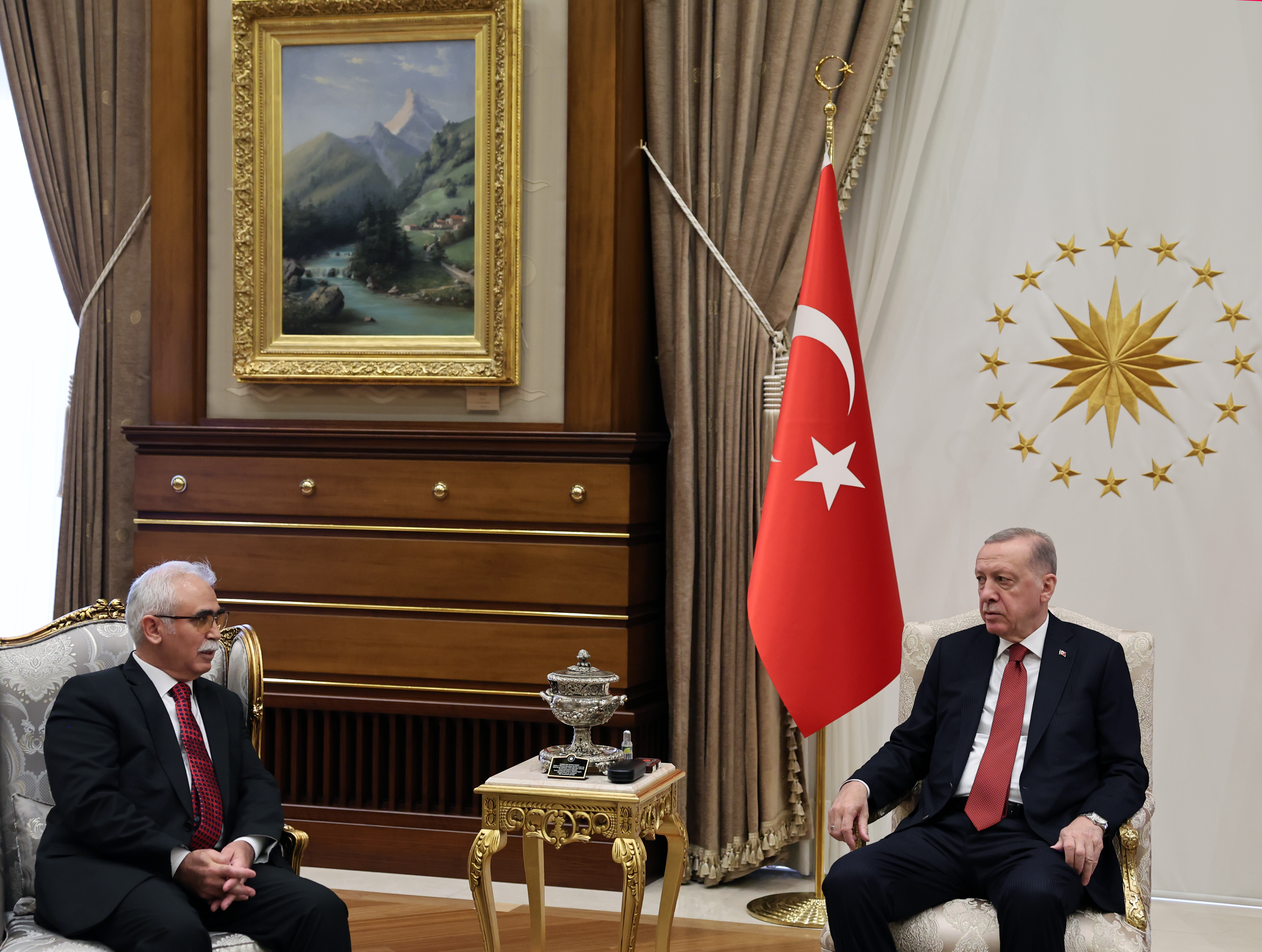 Cumhurbaşkanı Recep Tayyip Erdoğan, Anayasa Mahkemesi Başkanlığına seçilen Kadir Özkaya'yı Cumhurbaşkanlığı Külliyesi'nde kabul etti.