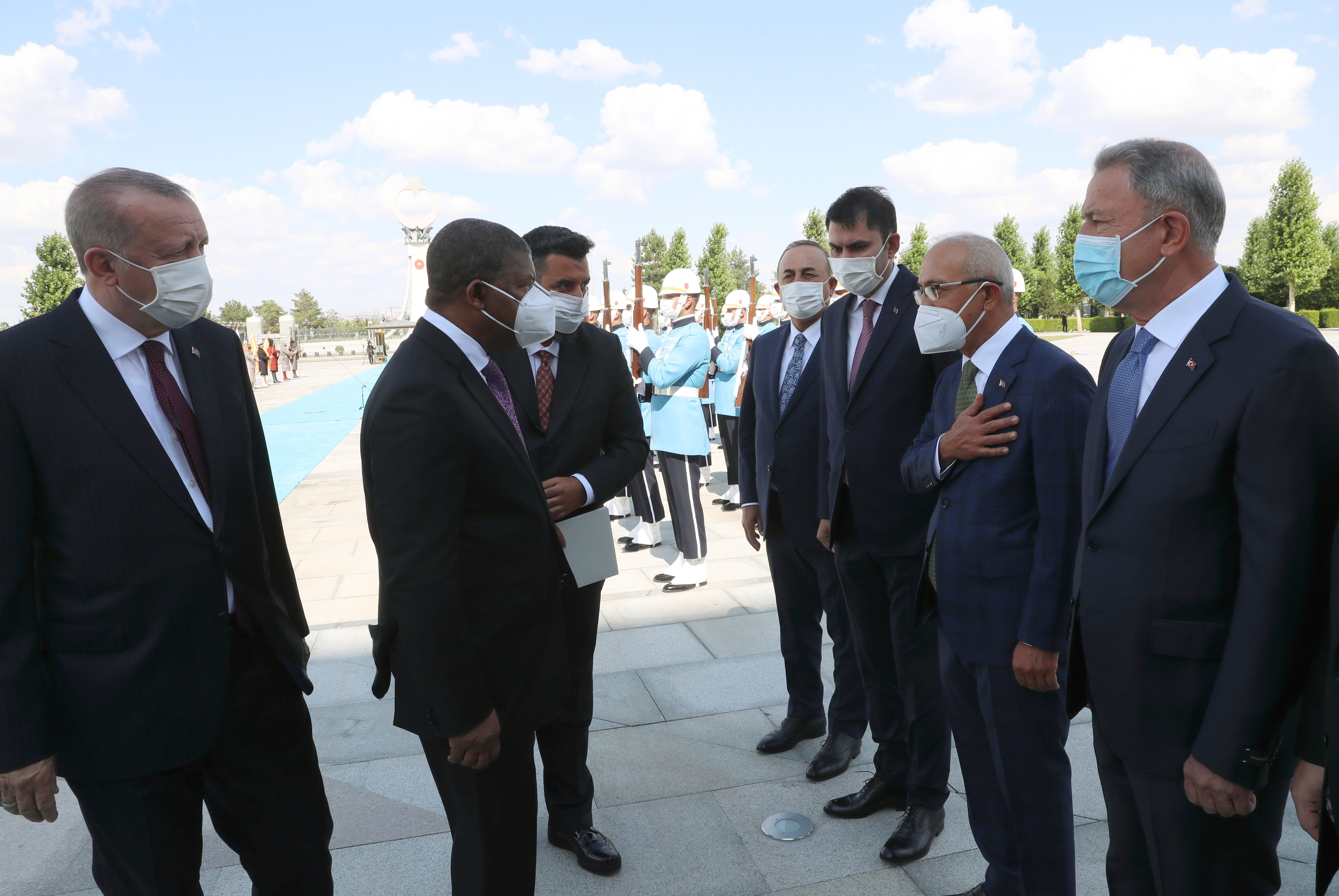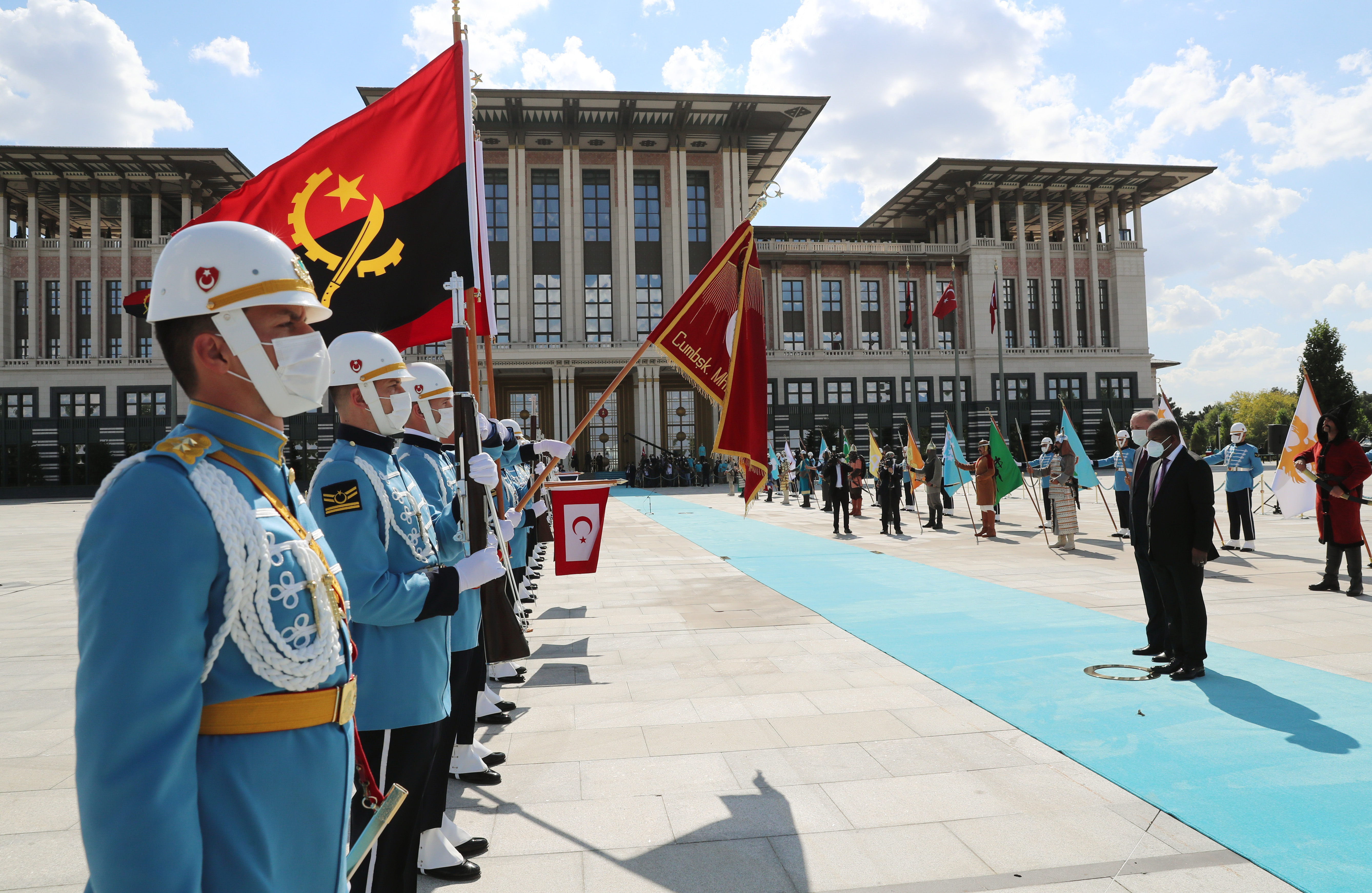 Angola Cumhurbaşkanı Lourenço, Muhafız Alayı Tören Kıtası'nı Türkçe, "Merhaba asker" diyerek selamladı. Törende, tarihte kurulan 16 Türk devletini temsil eden bayraklar ve askerler de yer aldı.