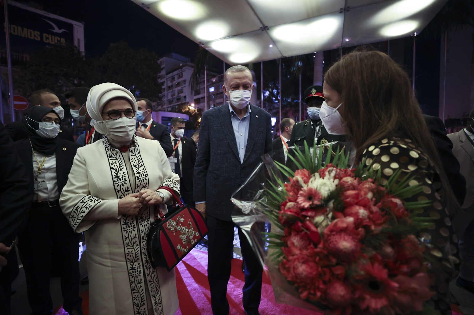 Cumhurbaşkanı Erdoğan ile eşi Emine Erdoğan, Dışişleri Bakanı Mevlüt Çavuşoğlu, Enerji ve Tabii Kaynaklar Bakanı Fatih Dönmez, Milli Savunma Bakanı Hulusi Akar, Ticaret Bakanı Mehmet Muş, AK Parti Sözcüsü Ömer Çelik, AK Parti Genel Başkan Yardımcısı Efkan Ala, Cumhurbaşkanlığı İletişim Başkanı Fahrettin Altun ve Cumhurbaşkanlığı Sözcüsü İbrahim Kalın da Luanda'ya geldi.