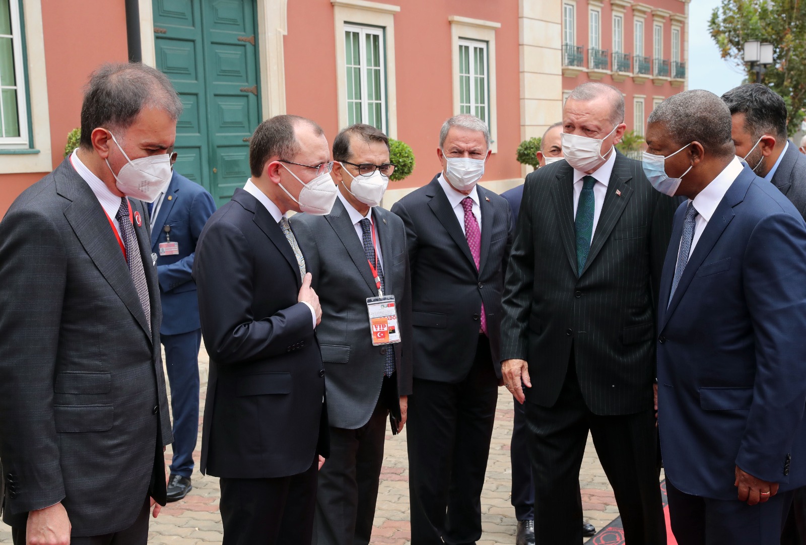 Cumhurbaşkanı Erdoğan ve Cumhurbaşkanı Lourenço'nun tören alanındaki yerlerini almalarının ardından iki ülke milli marşları çalındı. Cumhurbaşkanı Lourenço ile tören kıtasını denetleyen Cumhurbaşkanı Erdoğan, tören kıtasını selamladı.