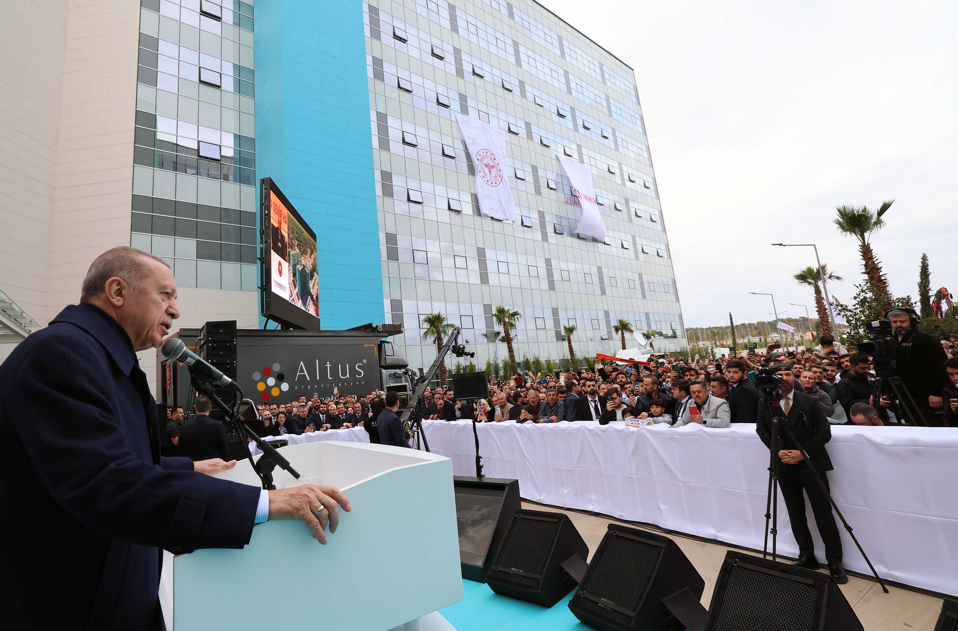 "Bu eserleri şehrimize kazandıran bakanlıklarımızı, kurumlarımızı yüklenici firmaları tebrik ediyorum. Hastanemizde dertlerine derman arayacak Antalyalı kardeşlerimize şimdiden Allah'tan şifalar diliyorum. İktidara gelirken milletimize, ülkemizi 4 temel sütun üzerinde yükseltme sözü vermiştik. Bunları da eğitim, sağlık, adalet ve güvenlik olarak sıralamıştık. Ardından bunlara ülkemizin diğer tüm başlıklardaki yatırım eksiklerini de ilave ettik. Altyapısı, sistemi ve insan kaynağıyla bu alanlarda yaptığımız reformlar sayesinde huzurlu ve güvenli bir ülkede yaşıyoruz. Mesela eğitim ve sağlık alanlarının her birinde sayıları yaklaşık 1,2 milyonu bulan personelle vatandaşımıza hizmet veriyoruz.