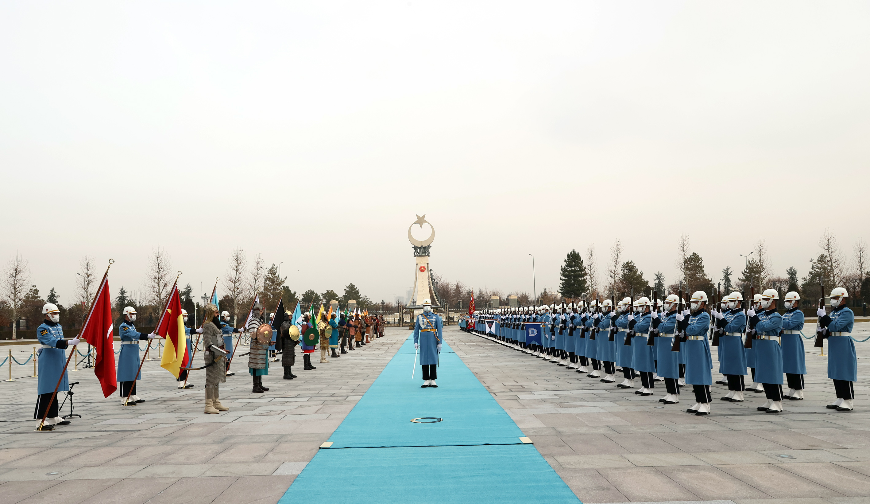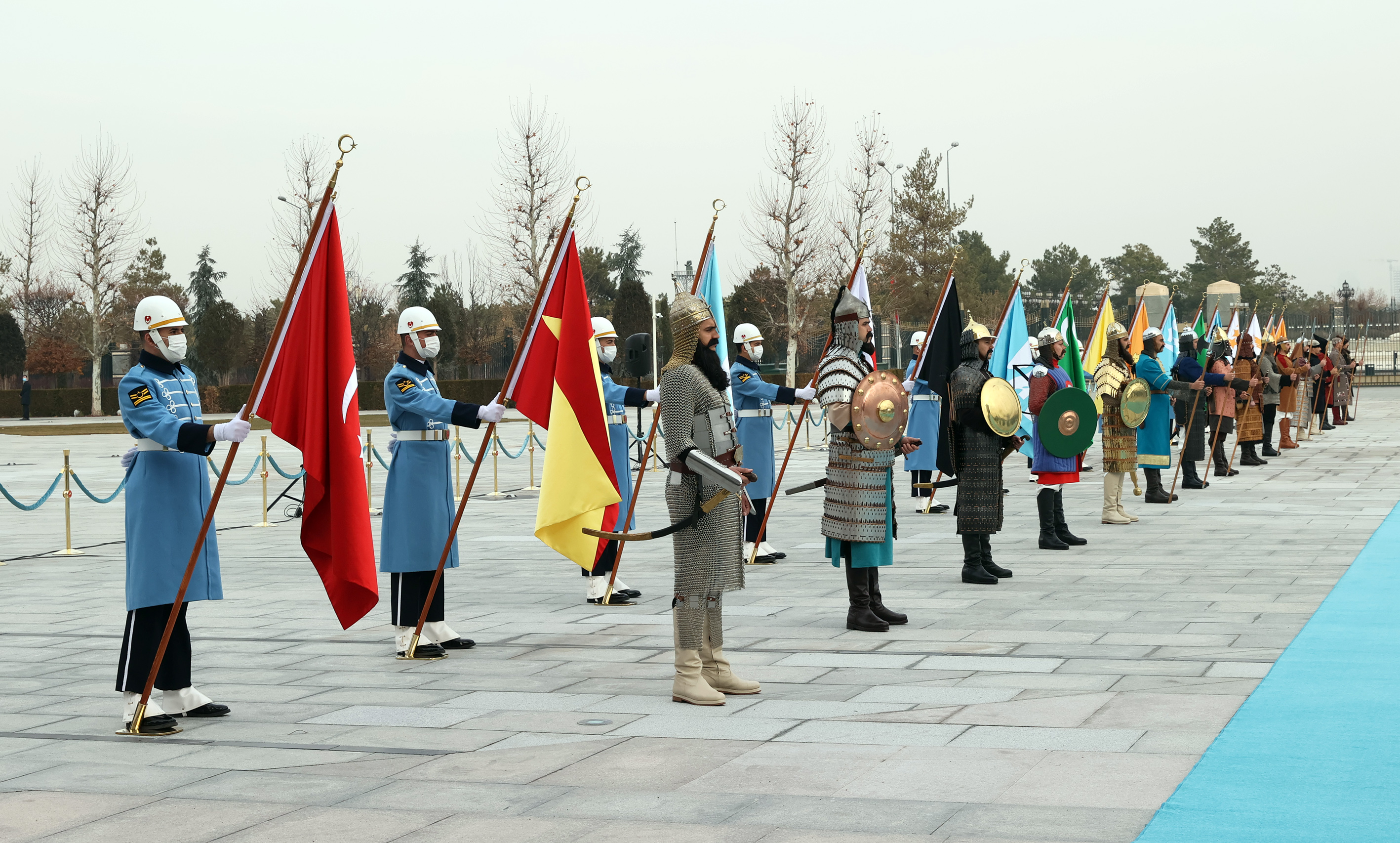 Arnavutluk Başbakanı Rama, Muhafız Alayı Tören Kıtası'nı selamladı. Törende, tarihte kurulan 16 Türk devletini temsil eden bayraklar ve askerler de yer aldı.