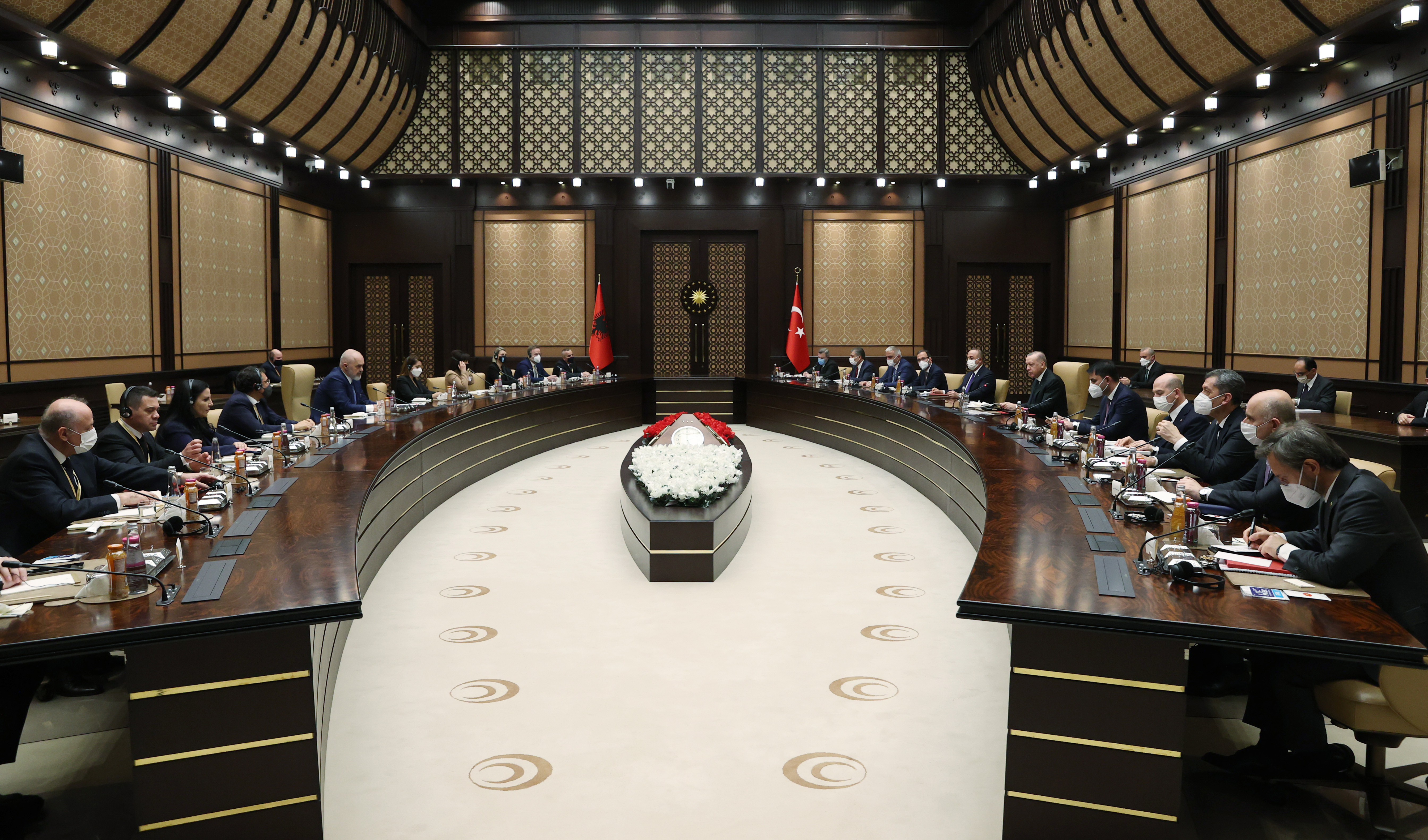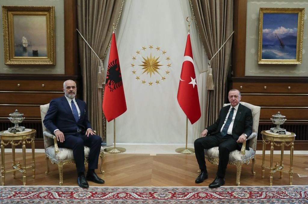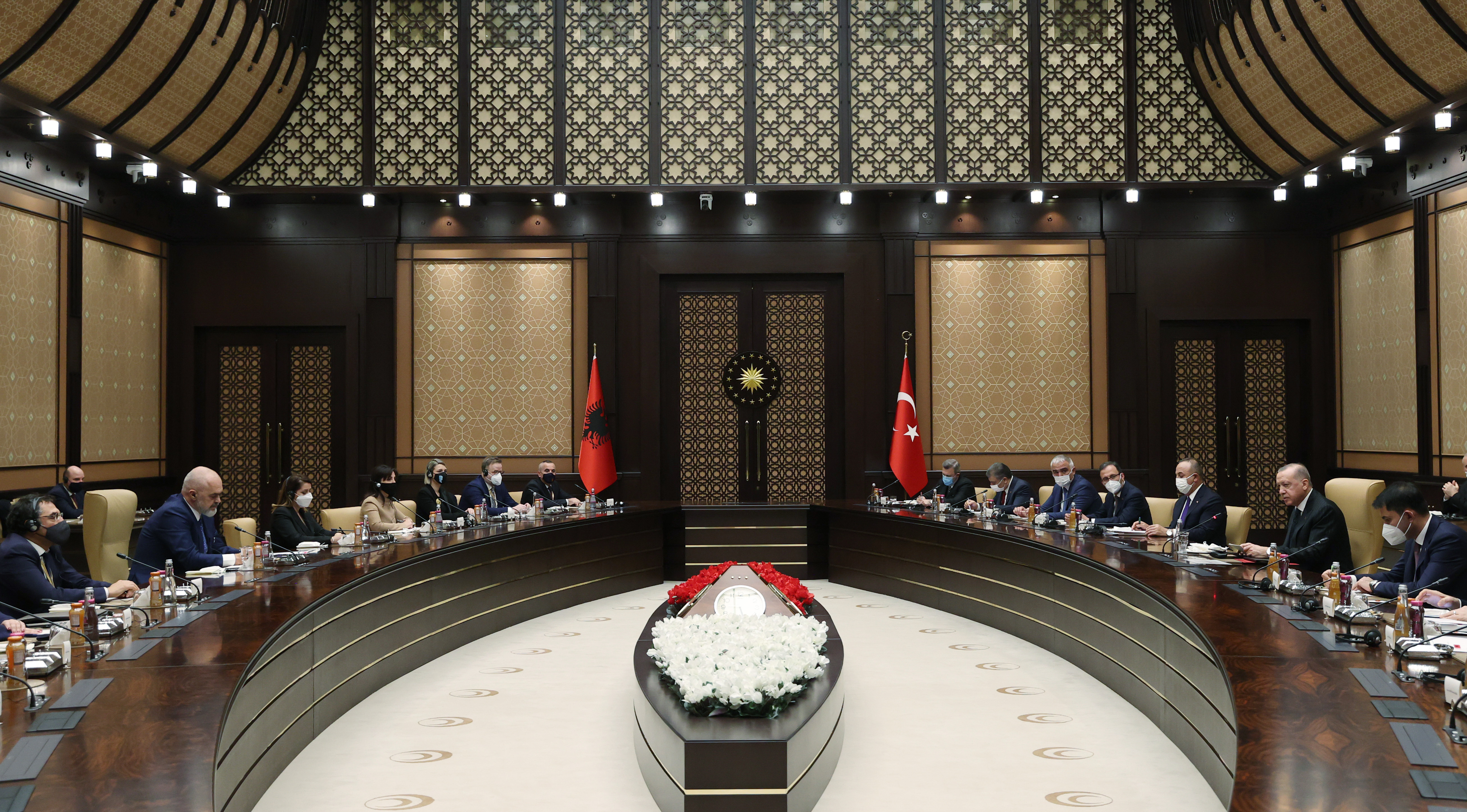 Cumhurbaşkanı Erdoğan ile Arnavutluk Başbakanı Rama daha sonra baş başa görüşmeye geçti. Görüşmenin ardından Cumhurbaşkanı Erdoğan ile Arnavutluk Başbakanı Rama başkanlığında heyetler arası görüşme gerçekleştirildi.