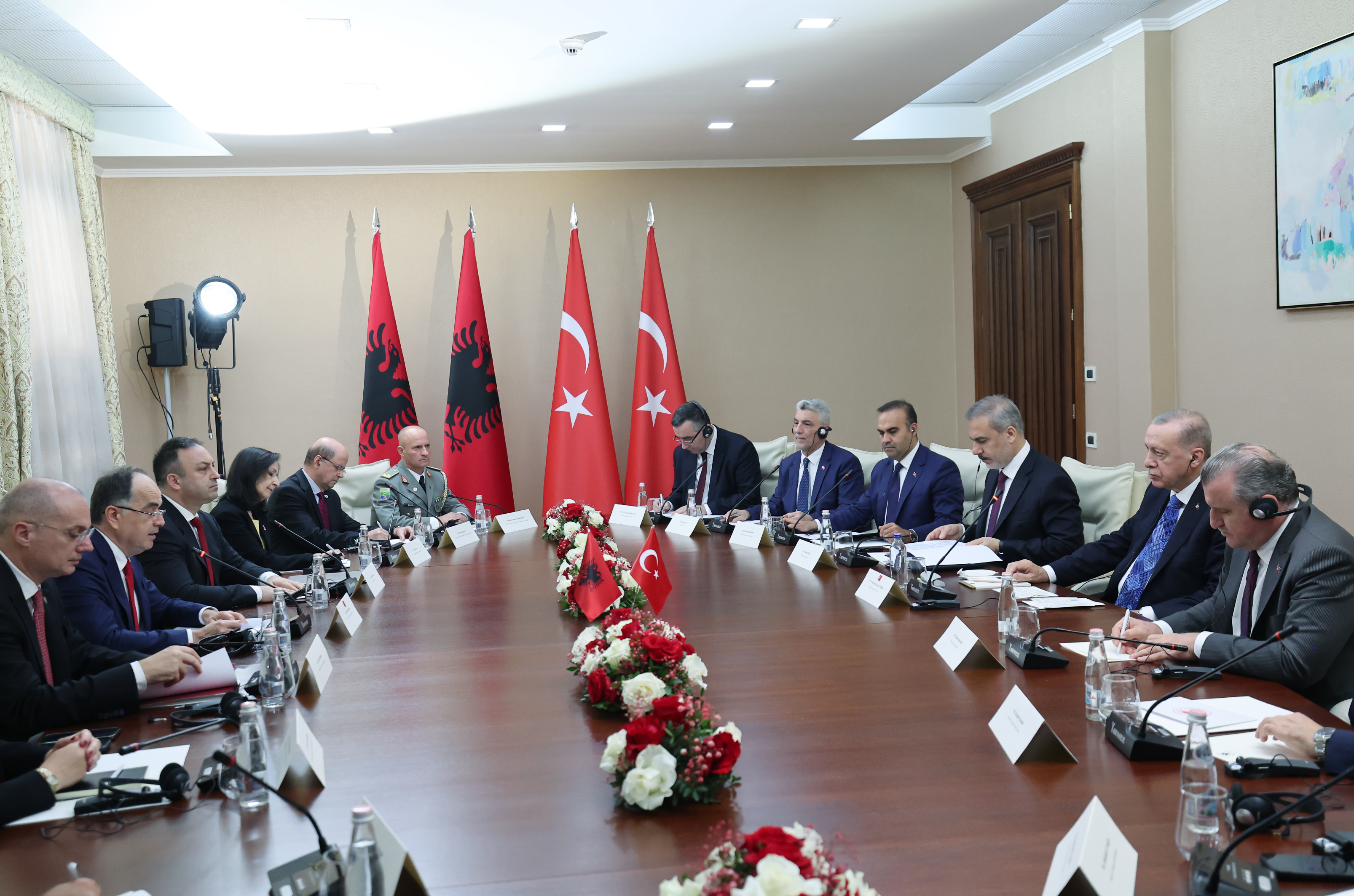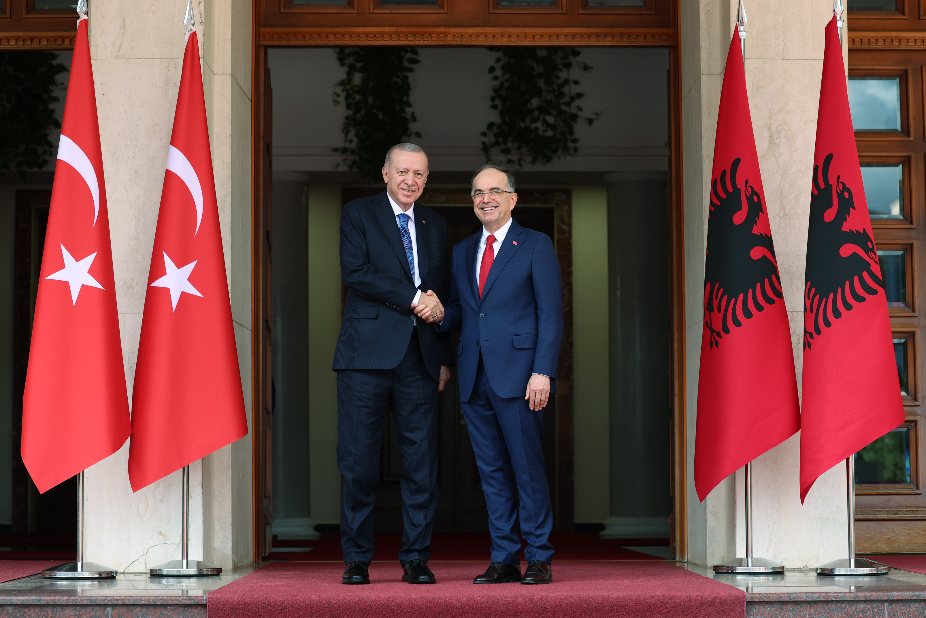 Cumhurbaşkanı Erdoğan, Tiran Uluslararası Rahibe Teresa Havalimanı'nda Arnavutluk Başbakan Yardımcısı ve Altyapı ve Enerji Bakanı Belinda Balluku, Dışişleri Bakanı Igli Hasani, İçişleri Bakanı Ervin Hoxha, Eğitim ve Spor Bakanı Ogerta Manastirliu, Arnavutluk'un Ankara Büyükelçisi Blerta Kadzadej, Devlet Protokolü Genel Müdürü Mamica Toska, Dışişleri Bakanı Hakan Fidan, Tiran Büyükelçisi Tayyar Kağan Atay ve diğer yetkililer tarafından törenle karşılandı.