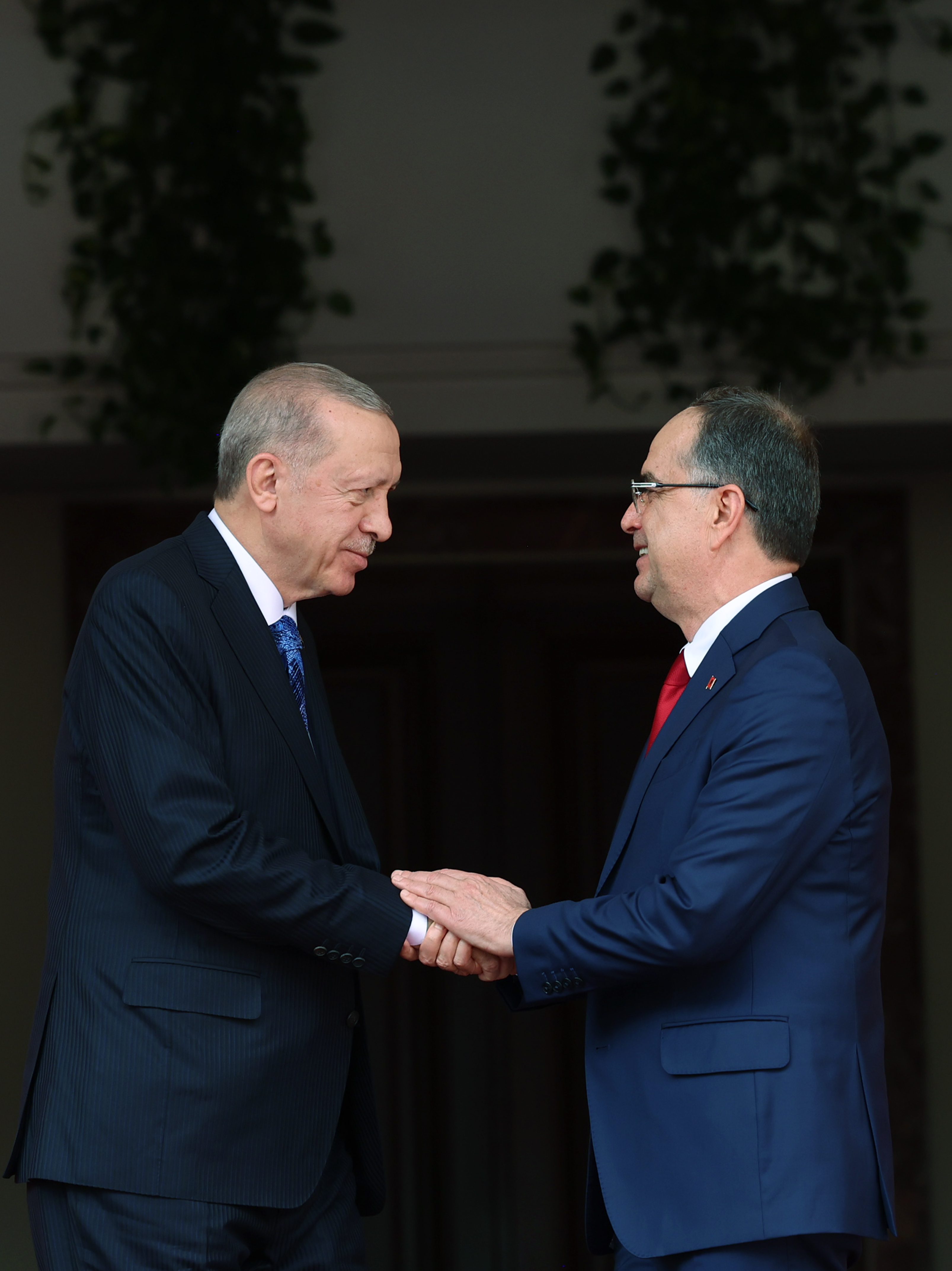 Cumhurbaşkanlığı Ofisindeki karşılama töreninde iki ülke millî marşlarının çalınmasının ardından tören kıtasını selamlayan Cumhurbaşkanı Erdoğan ve Begay birbirlerine heyetlerini takdim etti.