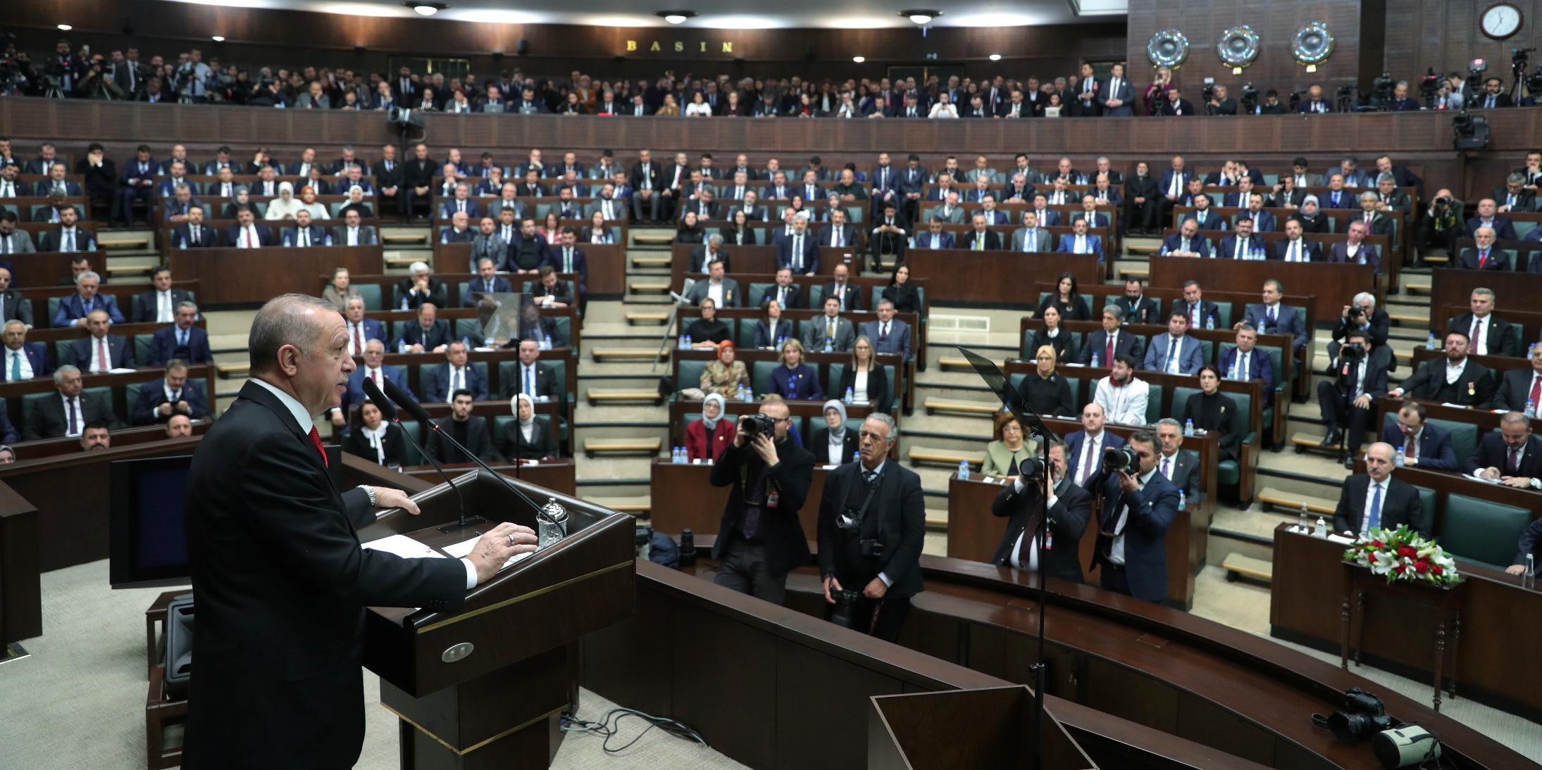 Cumhurbaşkanı Recep Tayyip Erdoğan, partisinin grup toplantısında yaptığı konuşmaya, Van'da meydana gelen çığ felaketinde hayatını kaybeden 41 kişiye Allah'tan rahmet, yaralanan 84 kişiye geçmiş olsun dileyerek başladı.