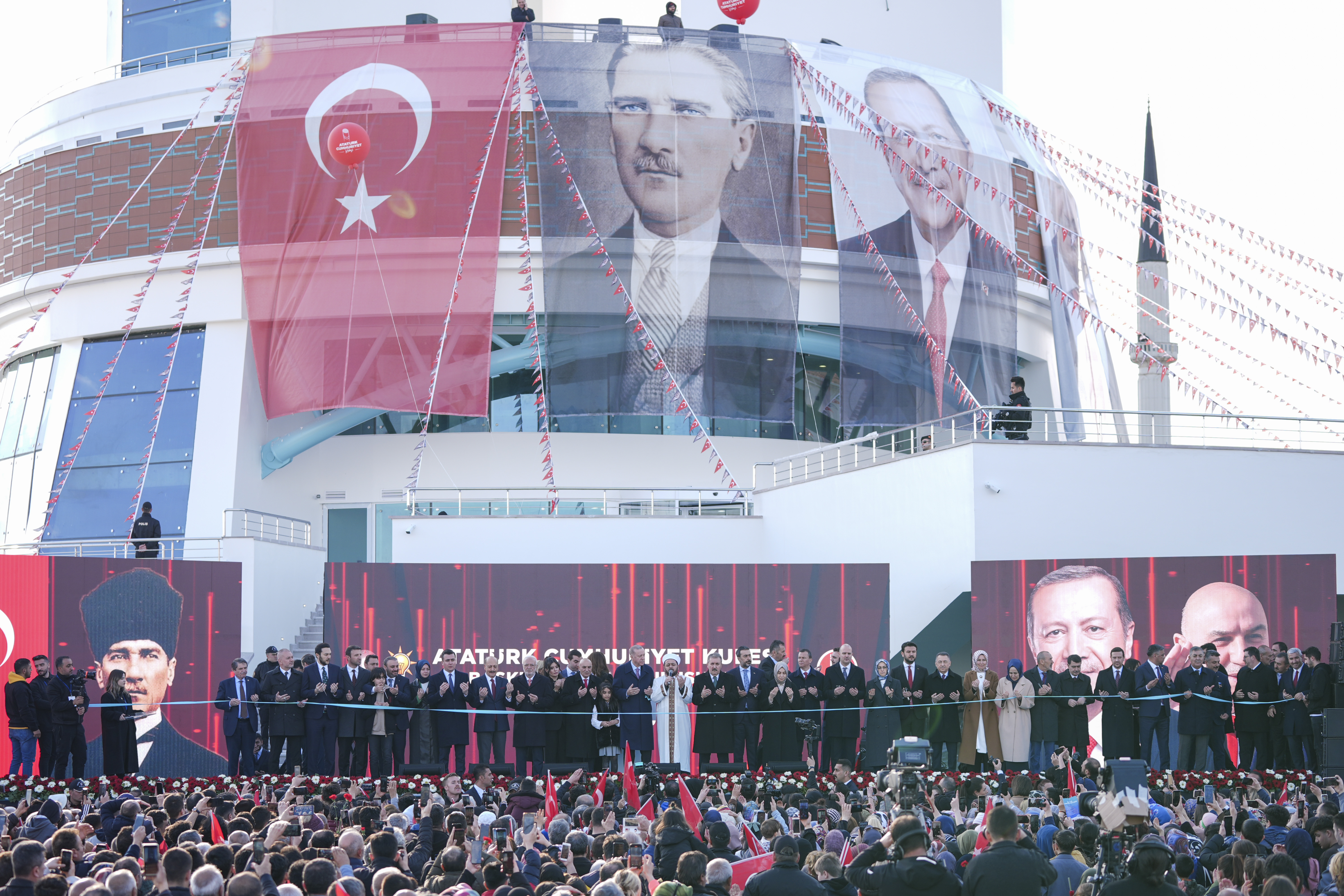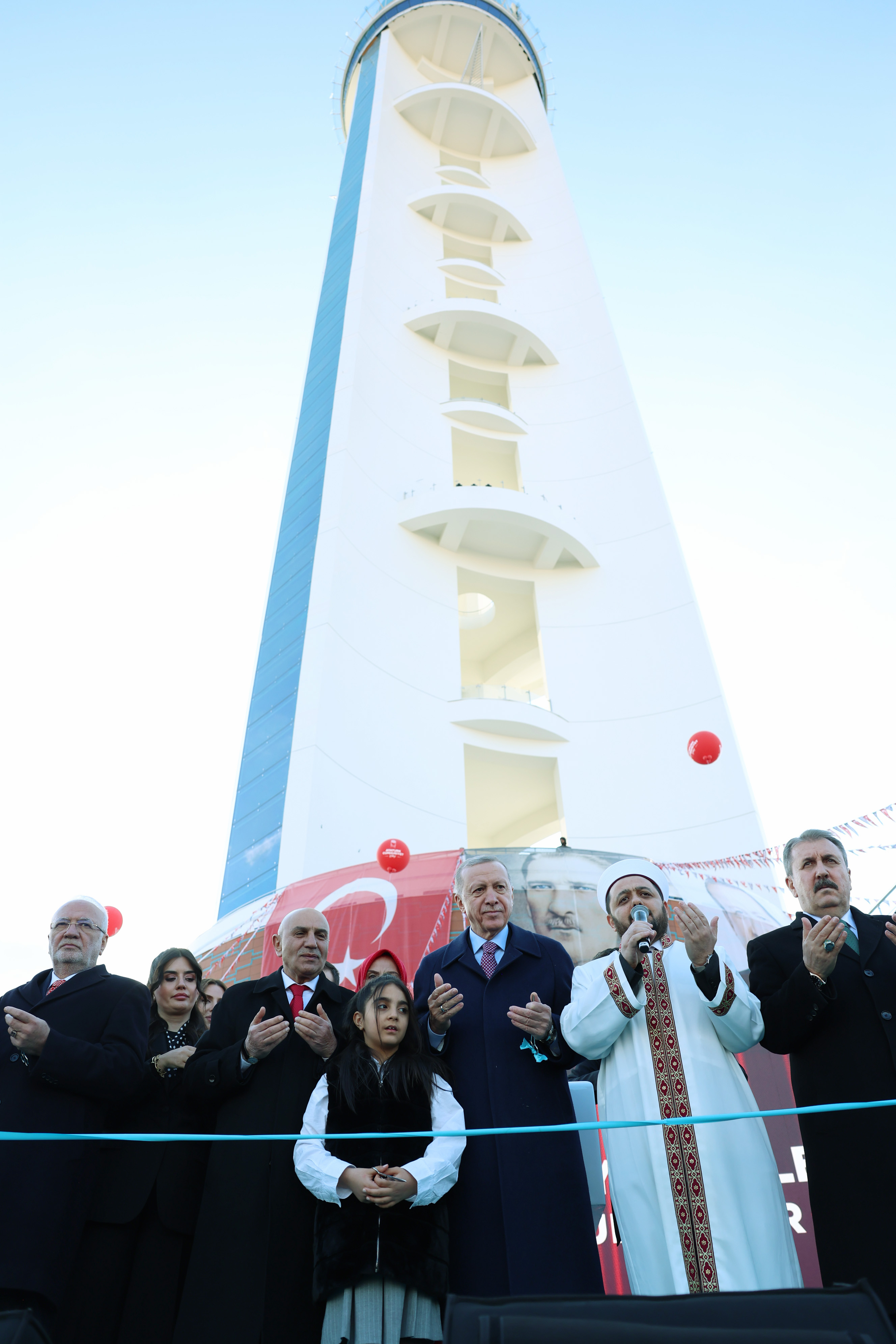 Cumhurbaşkanı Erdoğan'ın konuşmasının ardından yapılan dua ile kurdele kesilerek Atatürk Cumhuriyet Kulesi açıldı.
