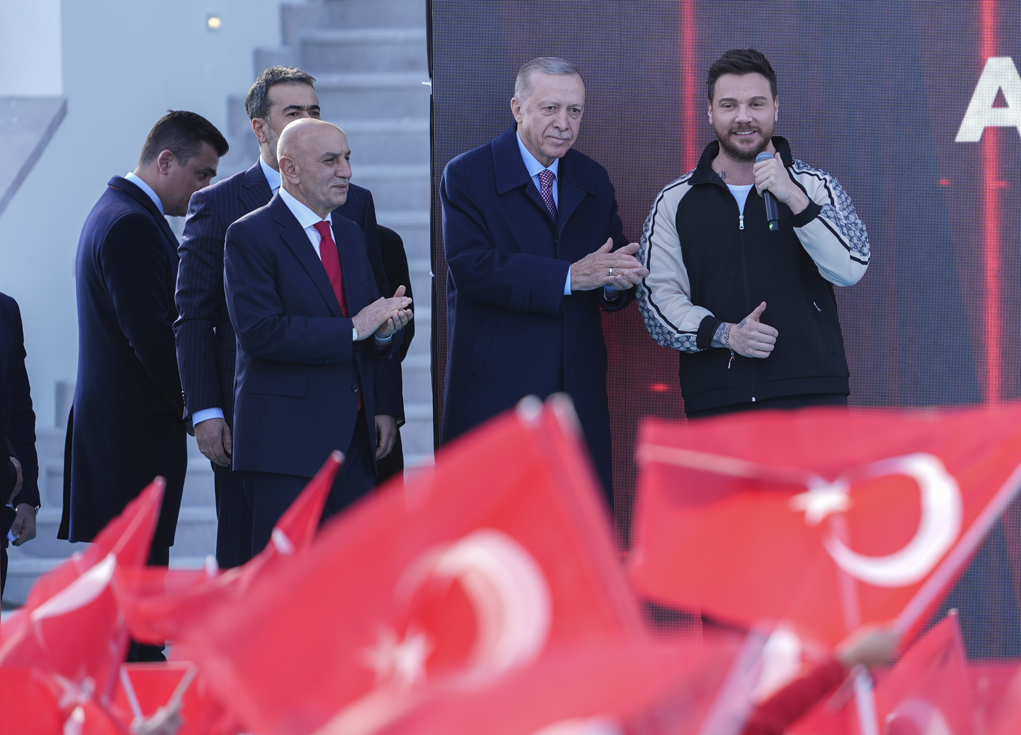 Cumhurbaşkanı Erdoğan, sahneye Cumhur İttifakı Ankara Büyükşehir Belediye Başkan adayı Turgut Altınok ve müzisyen Sinan Akçıl ile çıkarak vatandaşları selamladı. Akçıl, sahnede bir süre "Şarttır" isimli şarkısını seslendirdi.
