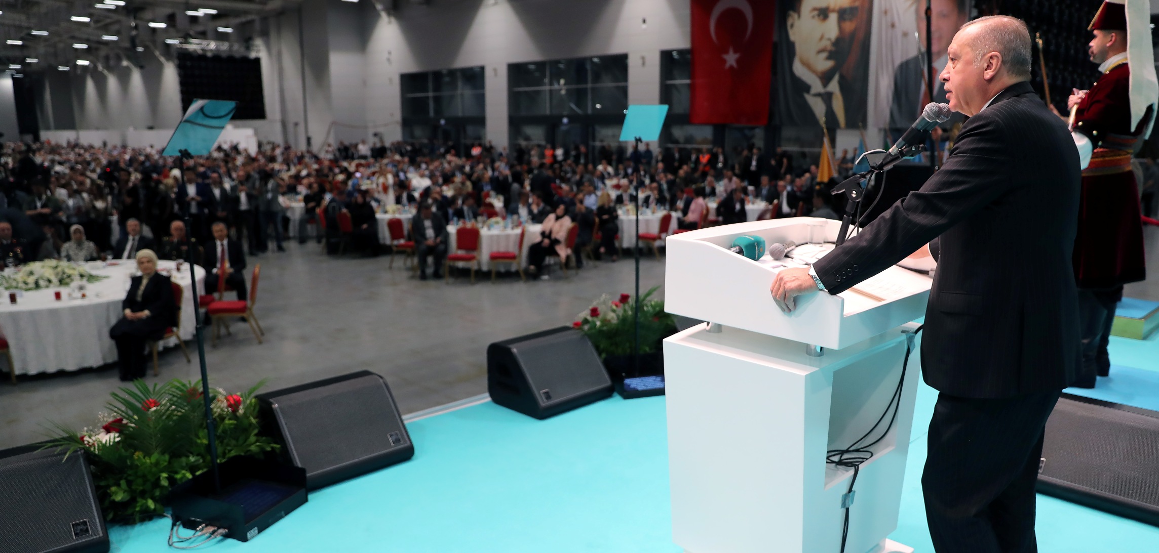 Cumhurbaşkanı Recep Tayyip Erdoğan, Avrasya Gösteri ve Sanat Merkezi'nde düzenlenen İstanbul'un Fethinin 566. Yılı Kutlamaları ve İftar Programı'ndaki konuşmasında, katılanların ramazanını tebrik etti.