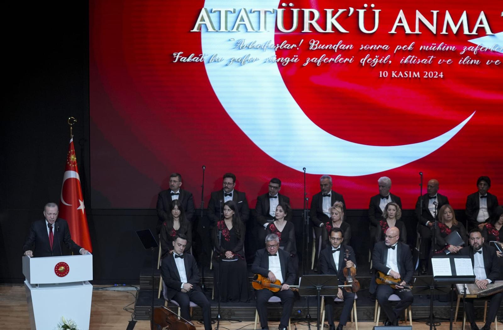 Burada konuşan Cumhurbaşkanı Erdoğan, Cumhuriyet'in banisi Gazi Mustafa Kemal Atatürk'ü ebediyete intikalinin 86. yılında saygıyla andı.