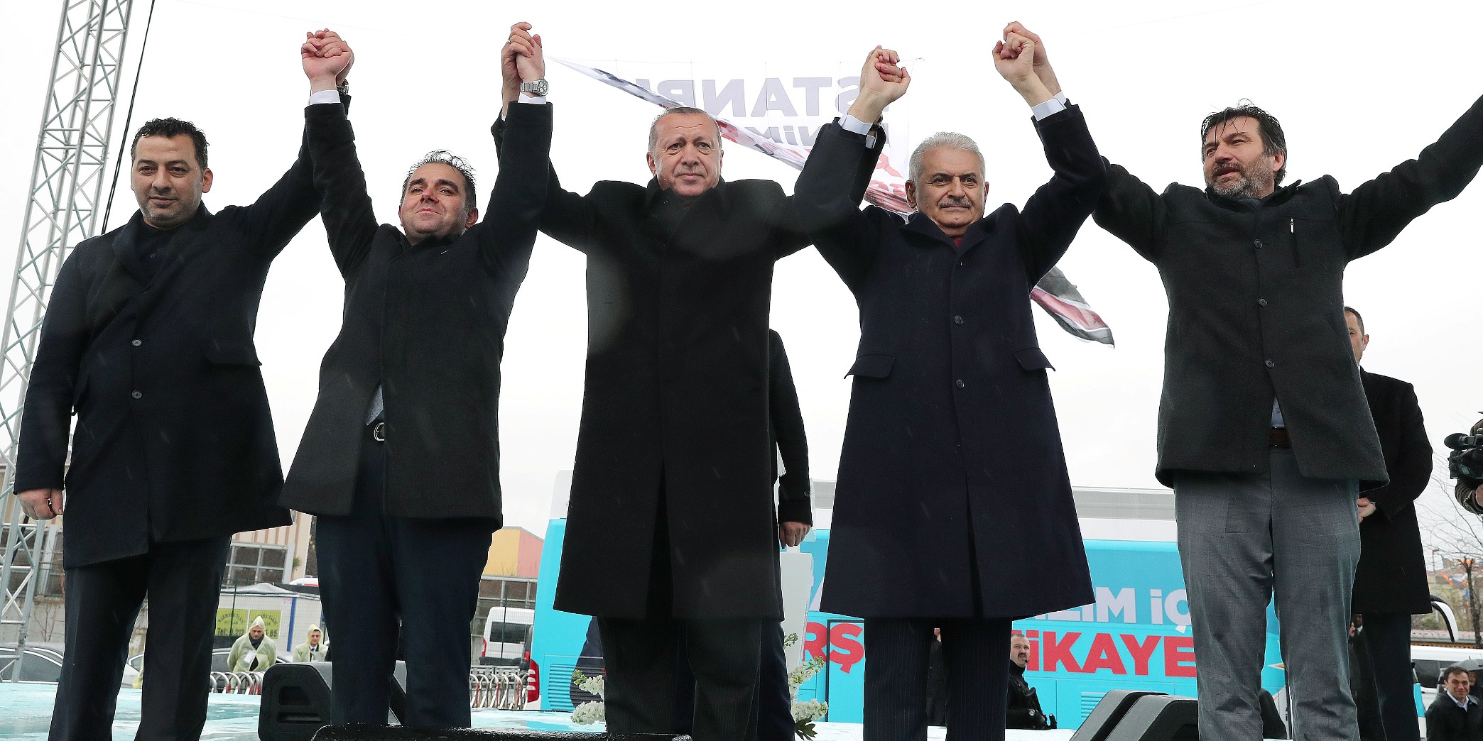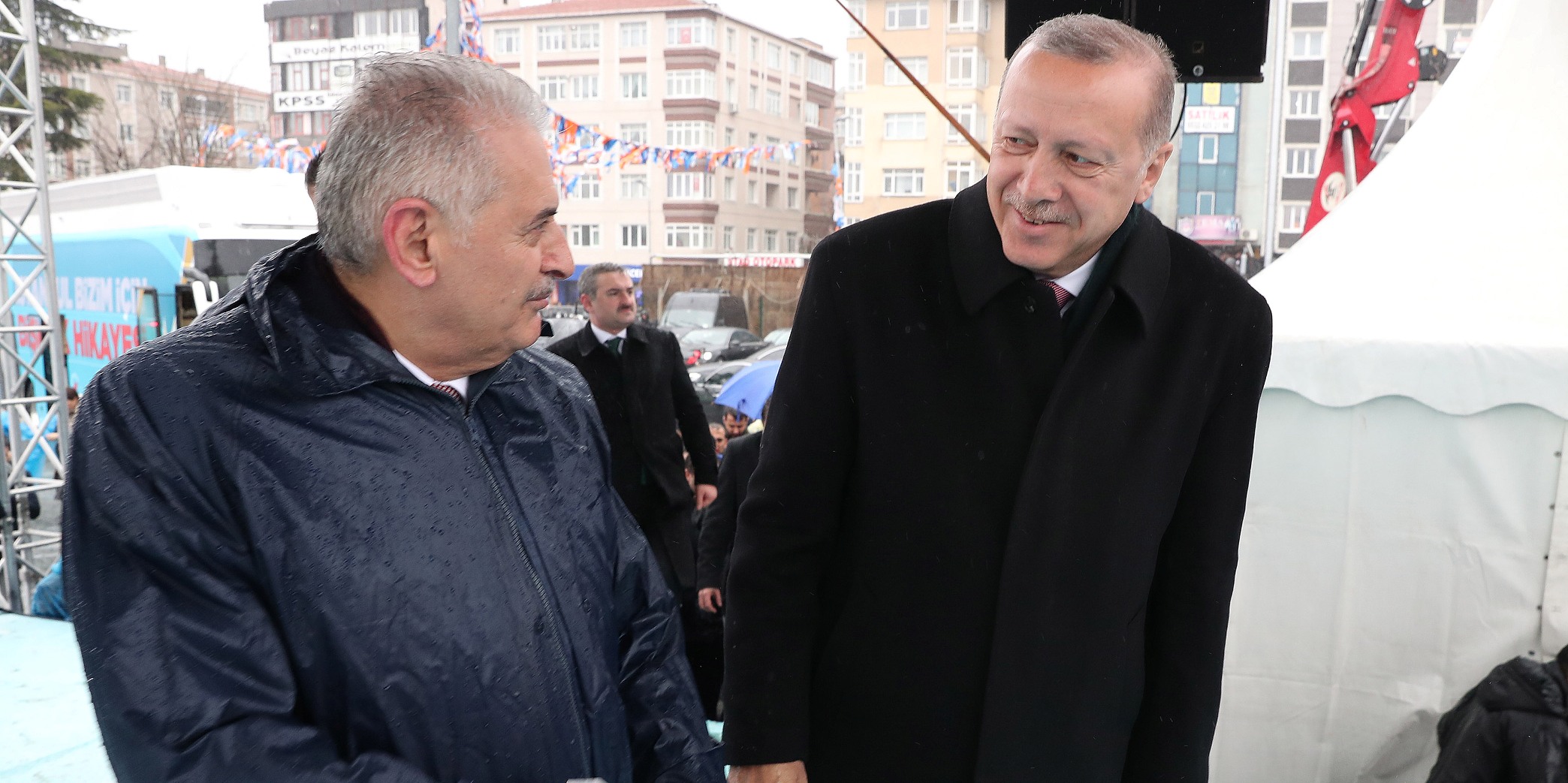 Erdoğan'ın, "Yeter ki bunları hayata geçirecek bir irade olsun. O da AK Parti. Yaparsa Ankara'da Cumhurbaşkanınız olarak ben, İstanbul'da büyükşehir olarak Binali Bey, burada da işte size Ulusoy. Hazır mıyız? Gayret ediyor muyuz? 31 Mart akşamı bize müjdeyi veriyor musunuz?" sözlerine kalabalık "Evet" karşılığını verdi.