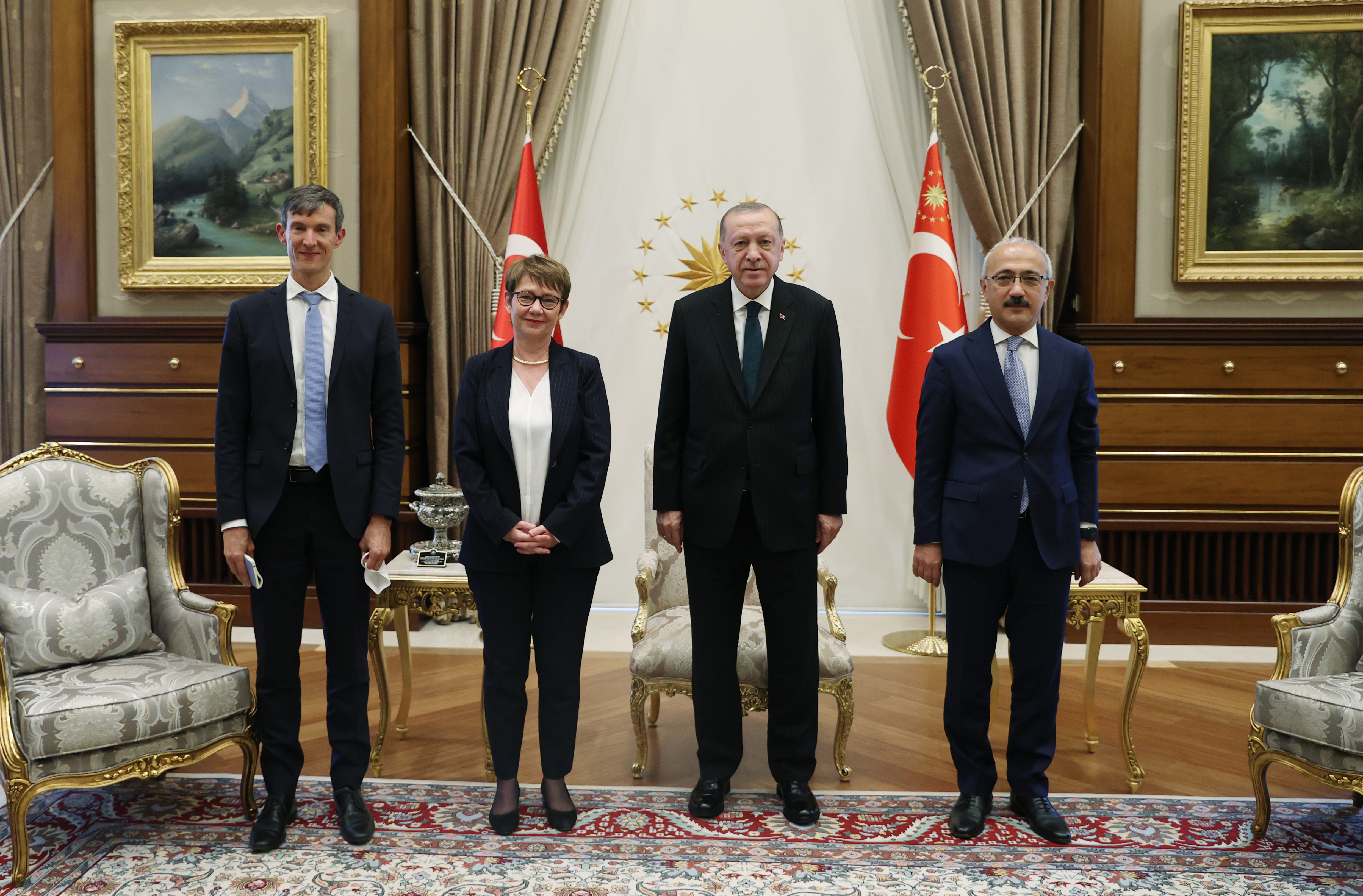 Cumhurbaşkanı Recep Tayyip Erdoğan, Avrupa İmar ve Kalkınma Bankası Başkanı Odile Renaud-Basso'yu kabul etti. Cumhurbaşkanlığı Külliyesi'nde, gerçekleştirilen kabulde, Hazine ve Maliye Bakanı Lütfi Elvan da hazır bulundu.