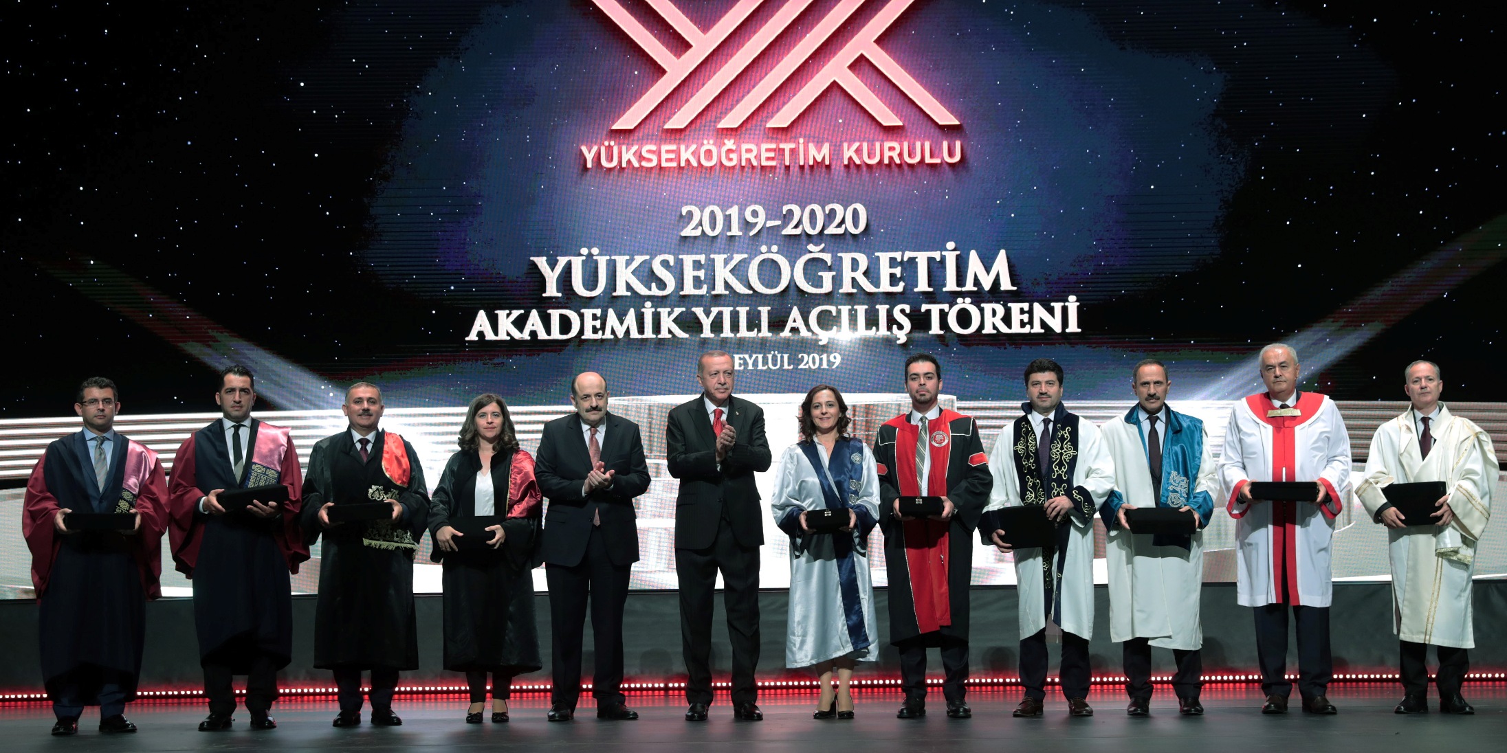 Konuşmasına 2019-2020 akademik yılının hayırlara vesile olmasını dileyerek başlayan Cumhurbaşkanı Erdoğan, yeni akademik yılda hocalara ve öğrencilere başarı temennisinde bulundu.