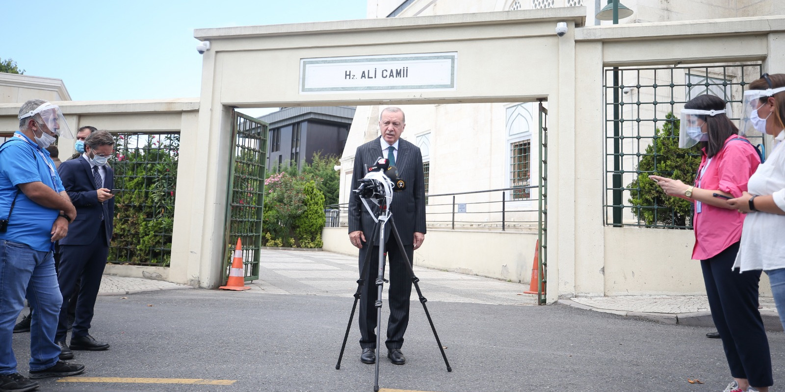 Cumhurbaşkanı Recep Tayyip Erdoğan, cuma namazını kıldığı Hz. Ali Camisi'nin çıkışında basın mensuplarının gündeme ilişkin sorularını yanıtladı.
