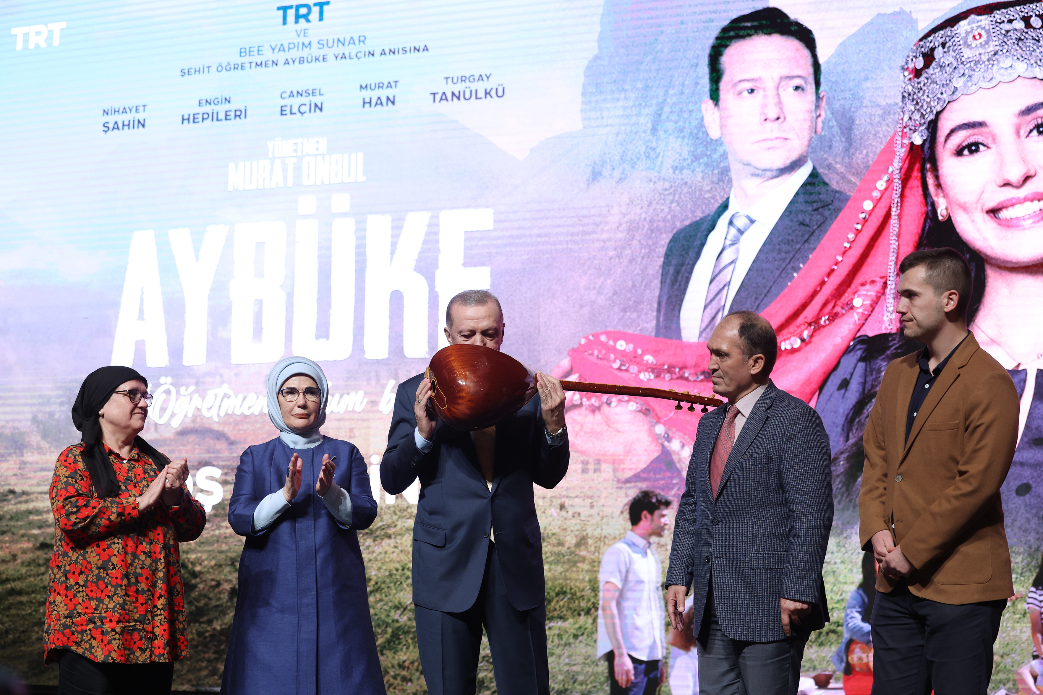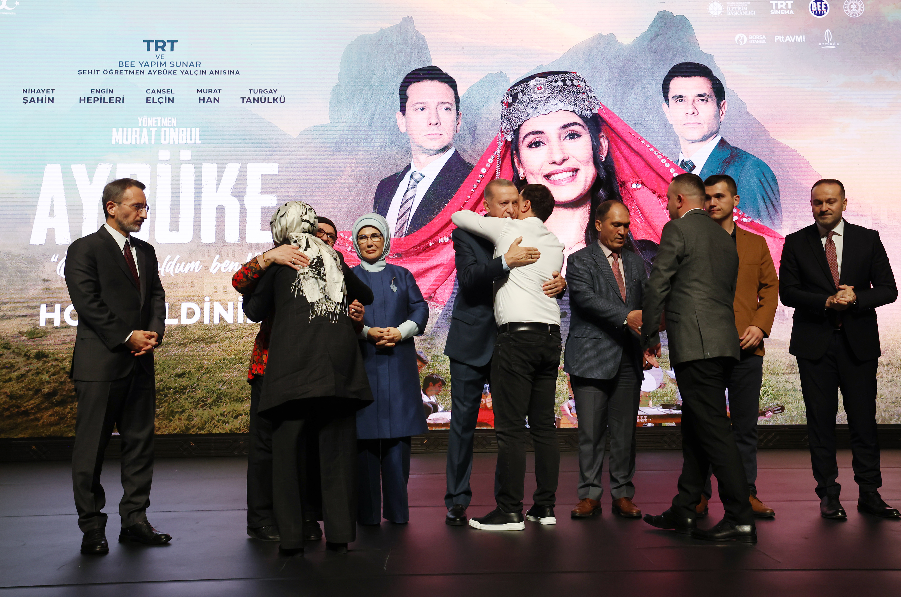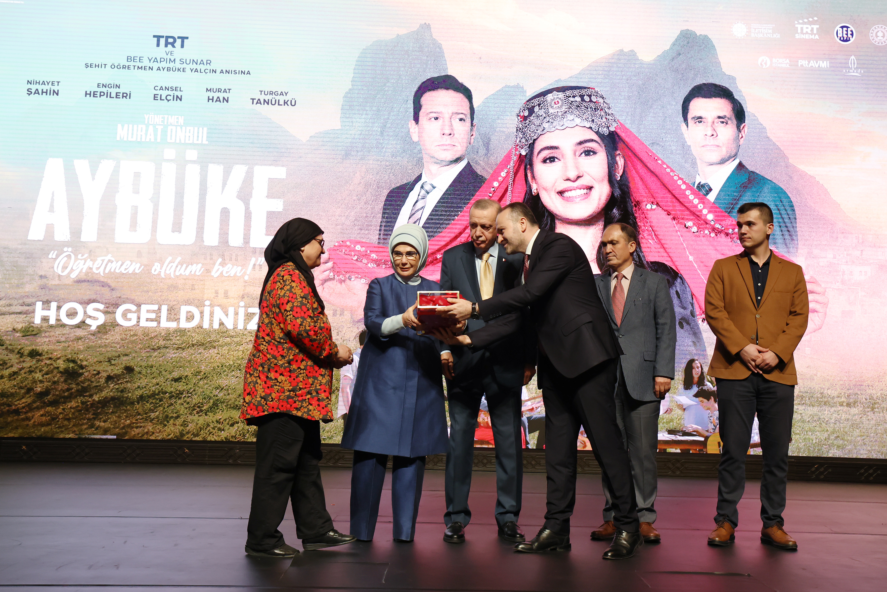 Cumhurbaşkanı Recep Tayyip Erdoğan, Batman'ın Kozluk ilçesinde 2017'de teröristlerin saldırısı sonucu 22 yaşında şehit olan öğretmen Şenay Aybüke Yalçın'ın hayatını ve öğretmenlik azmini beyazperdeye taşıyan, "Aybüke; Öğretmen Oldum Ben!" filminin galasına katıldı.