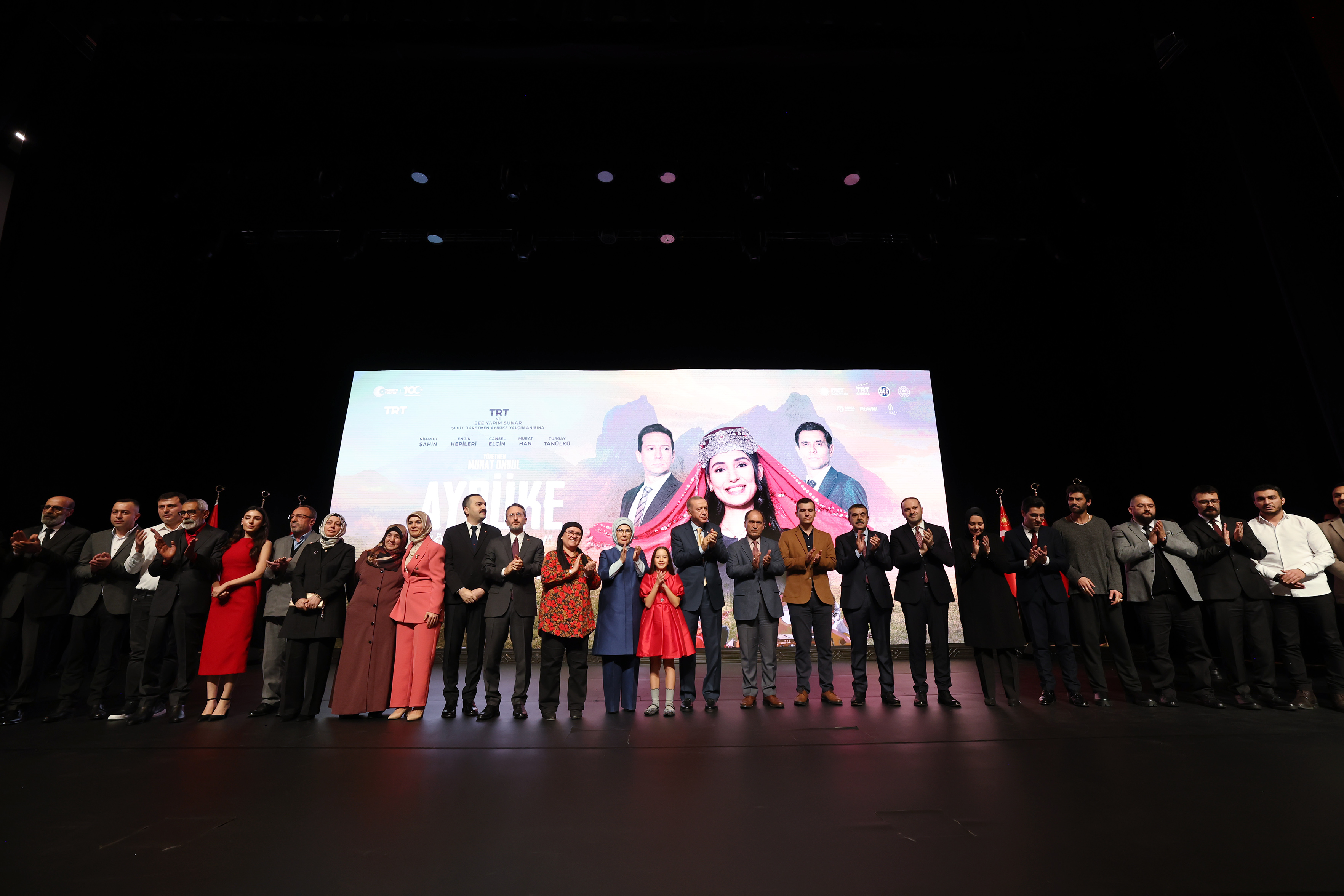 Cumhurbaşkanı Erdoğan, filmi, eşi Emine Erdoğan, şehit öğretmen Aybüke Yalçın'ın annesi Zehra, babası Sadık, kardeşi Aybars Yalçın ve filmin oyuncularıyla birlikte izledi.